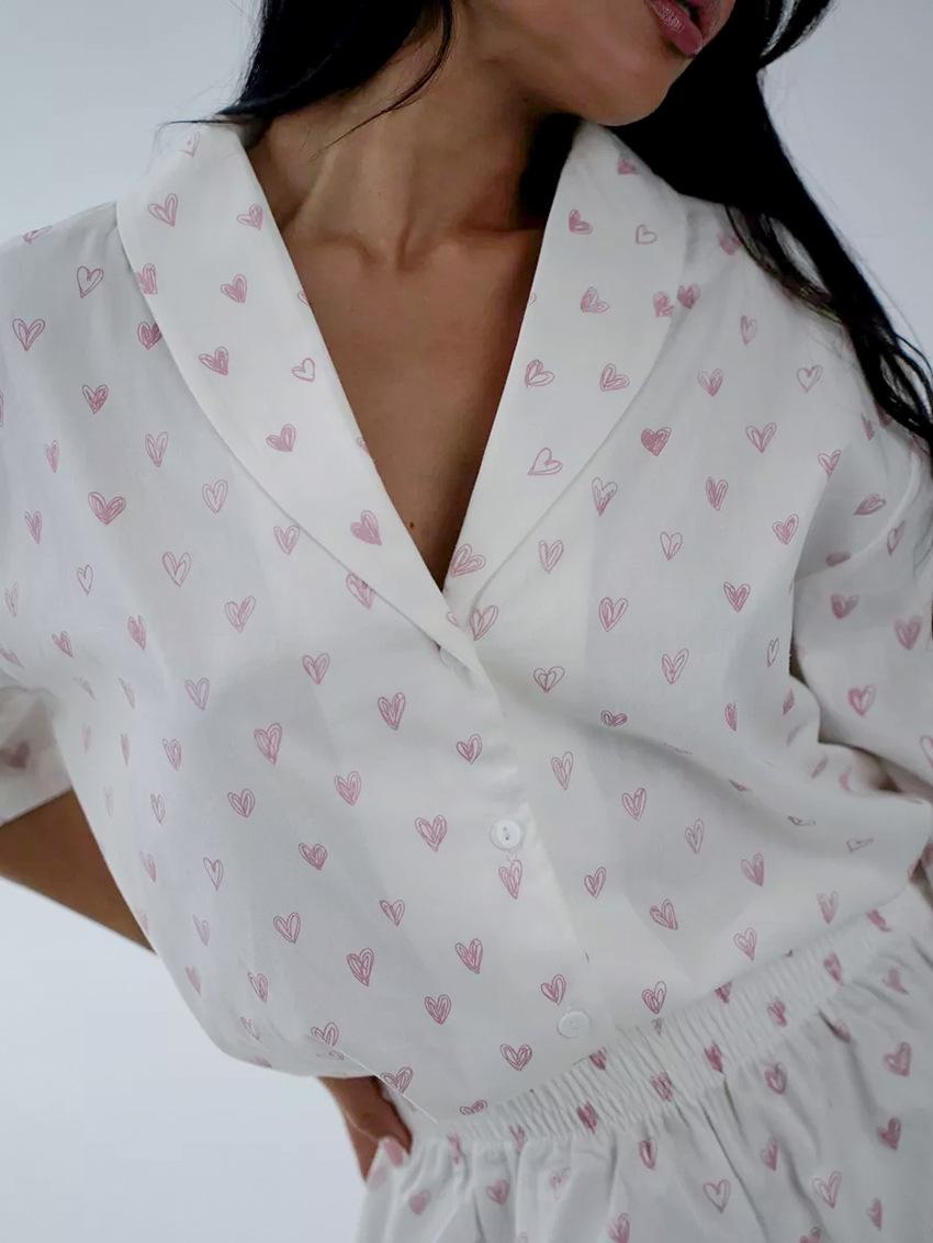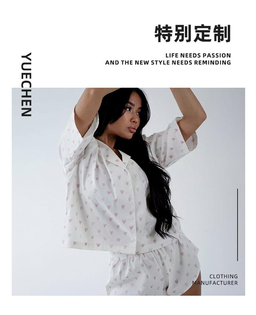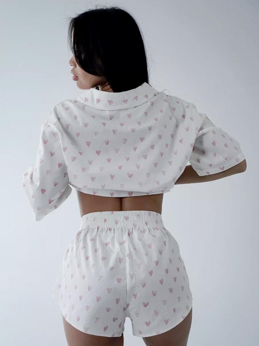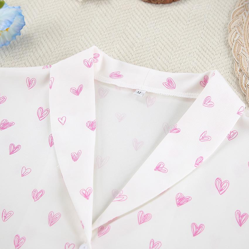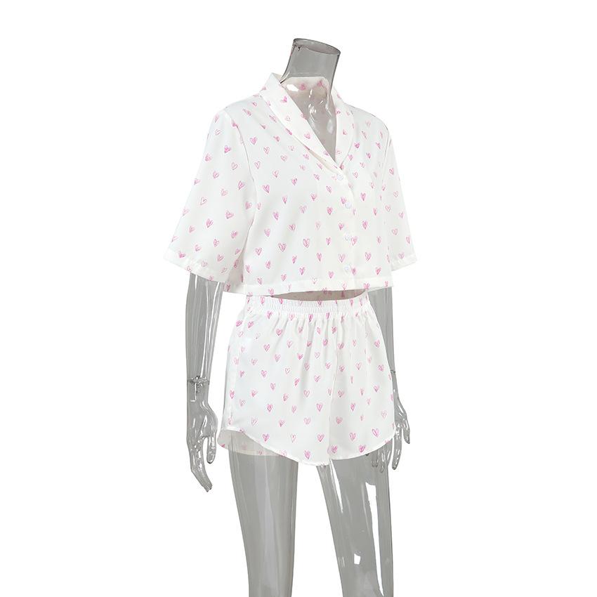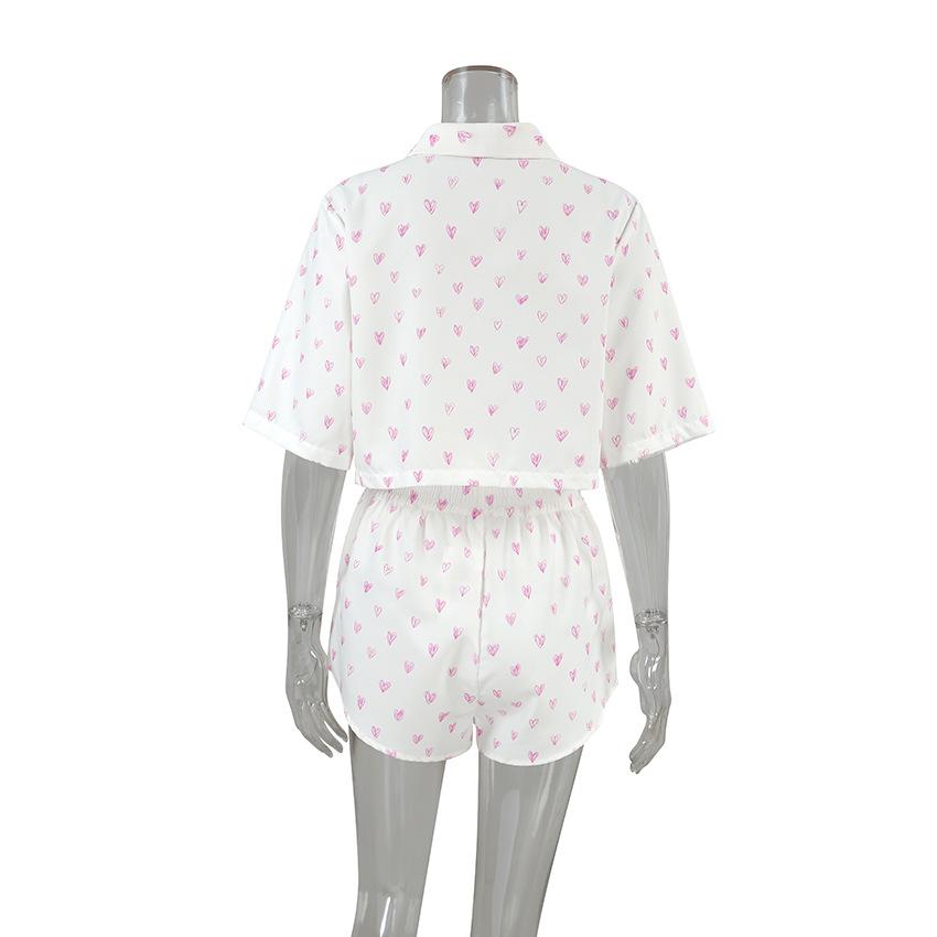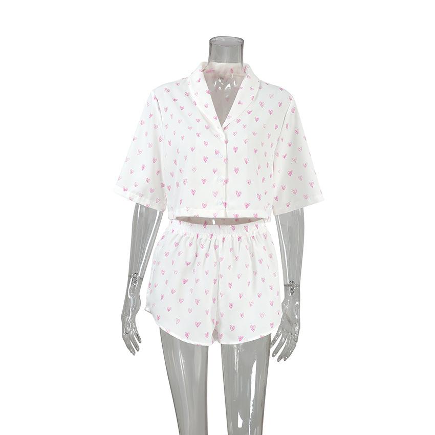 2024 primavera nuevo estampado de amor moderno suave cómodo de manga corta pantalones cortos pijama traje transfronterizo ropa de casa para mujer