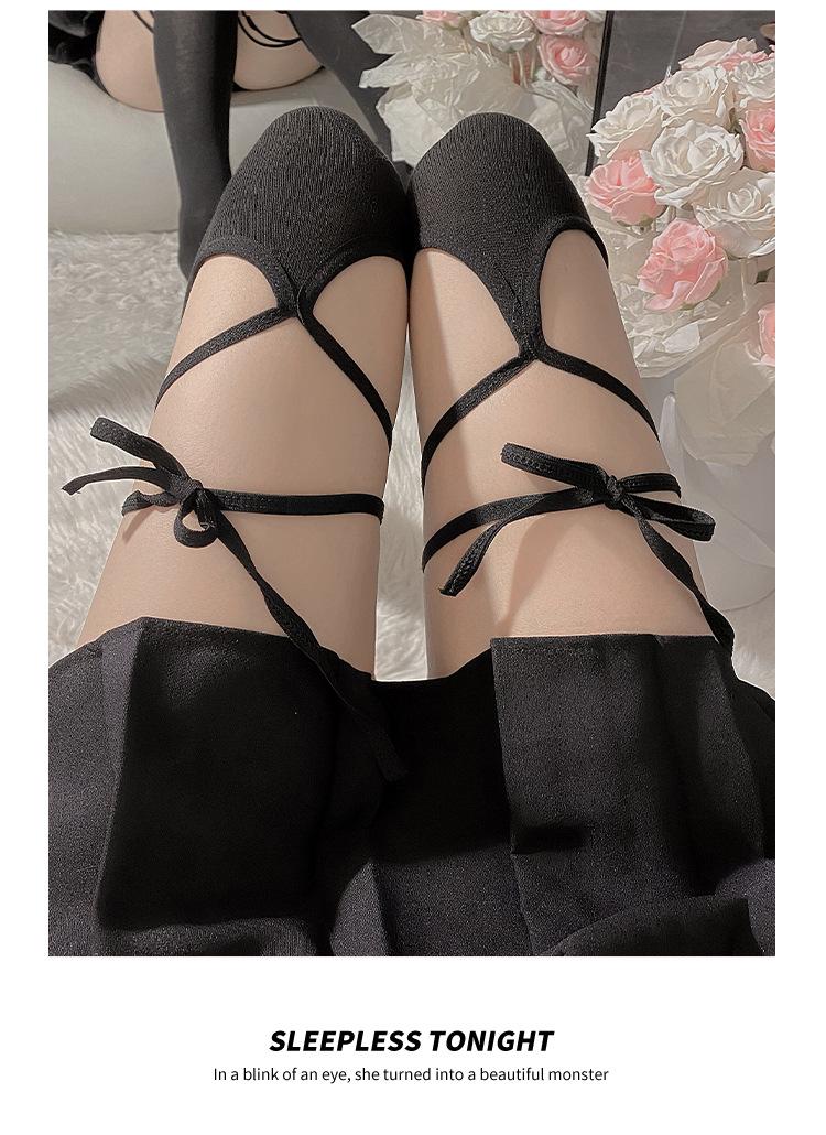 Calcetines japoneses con tiras cruzadas por encima de la rodilla, largos, de tubo, bonitos, de estilo Lolita para estudiantes, de seda y algodón.
