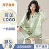 23 Nuevo pijama de maternidad de terciopelo, cómodo y agradable para la piel, traje de color sólido con cuello redondo, ropa de maternidad para el hogar de enfermería