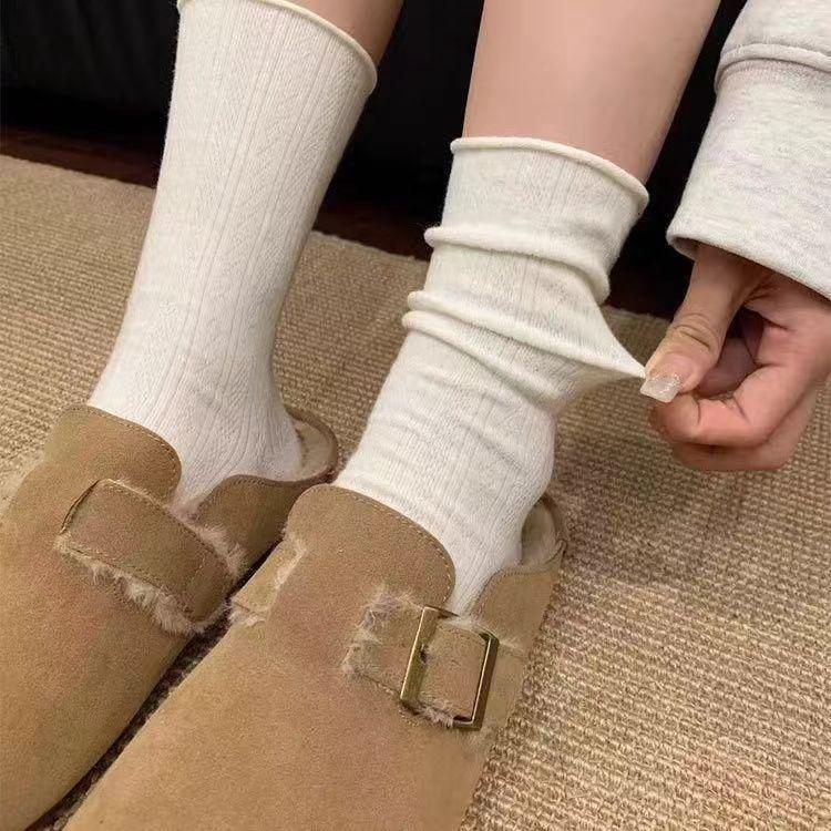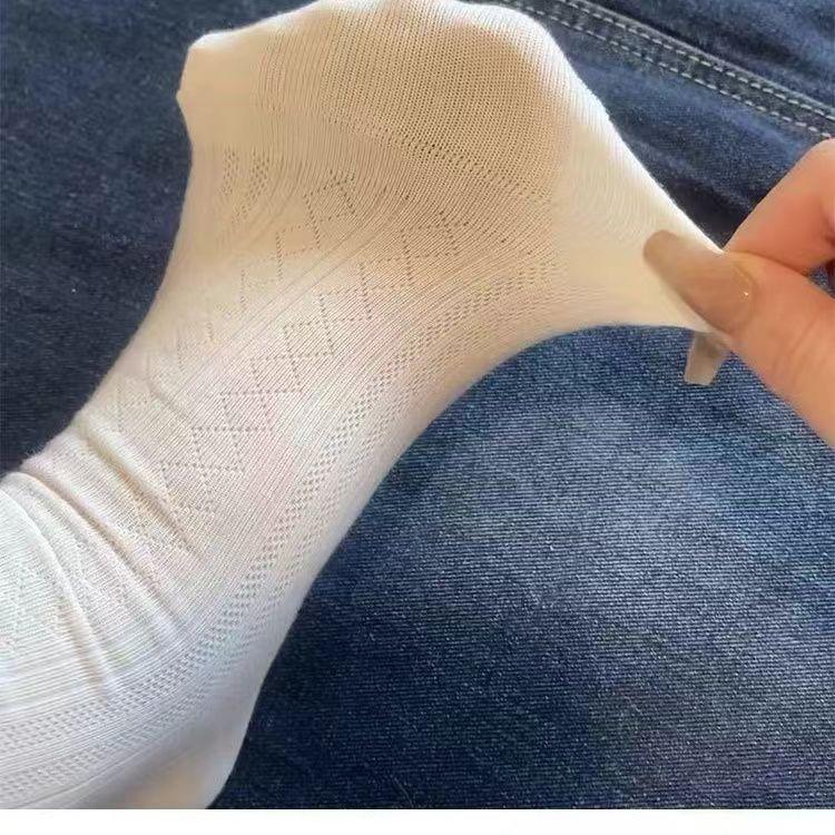 Calcetines de verano para mujer absorbentes de sudor desodorantes delgados transpirables de algodón calcetines de verano de media caña calcetines de luna calcetines apilados de color sólido huecos para mujer