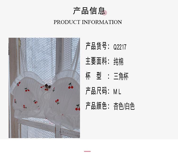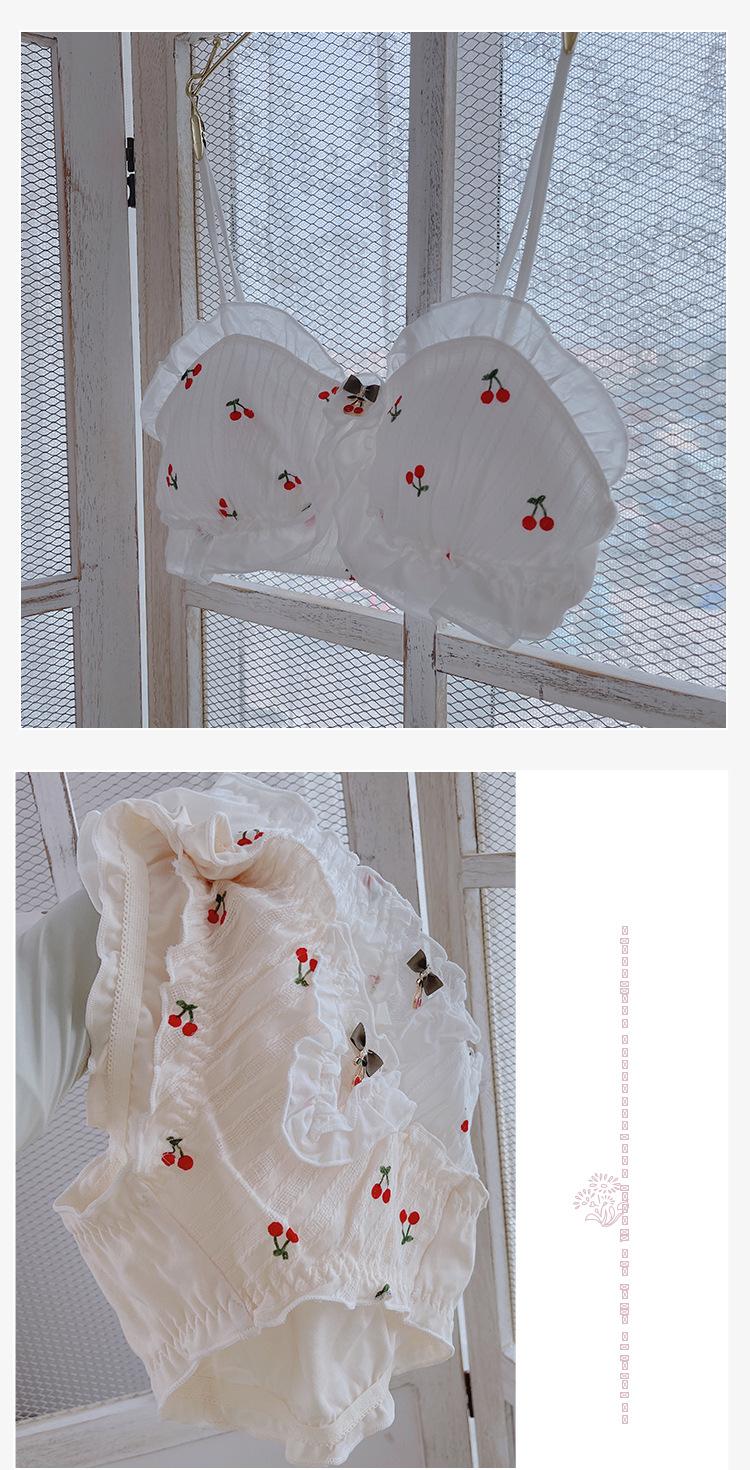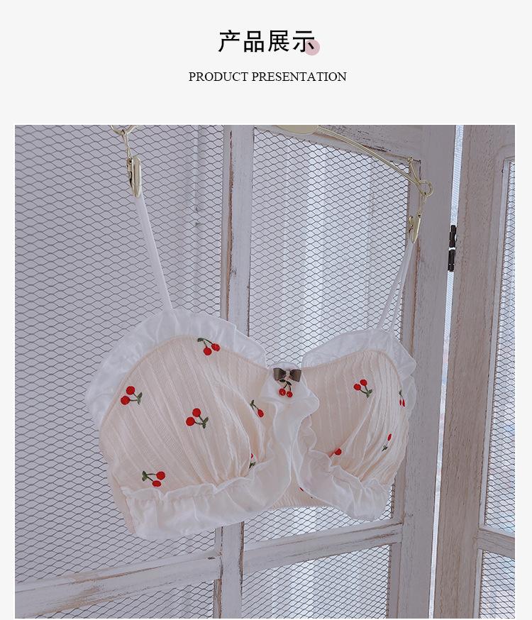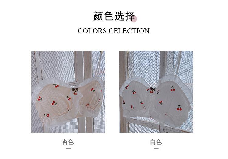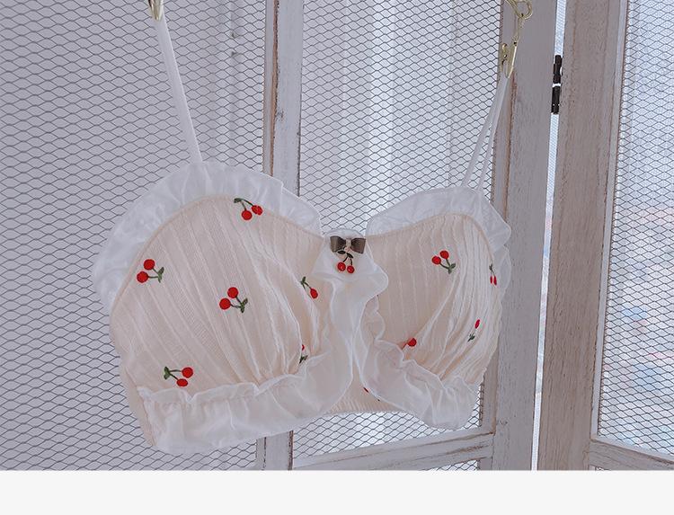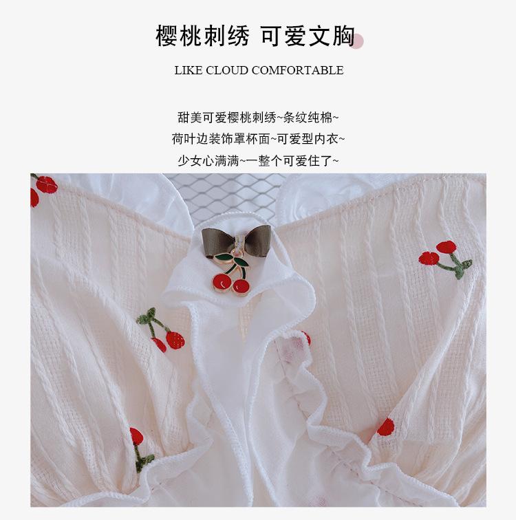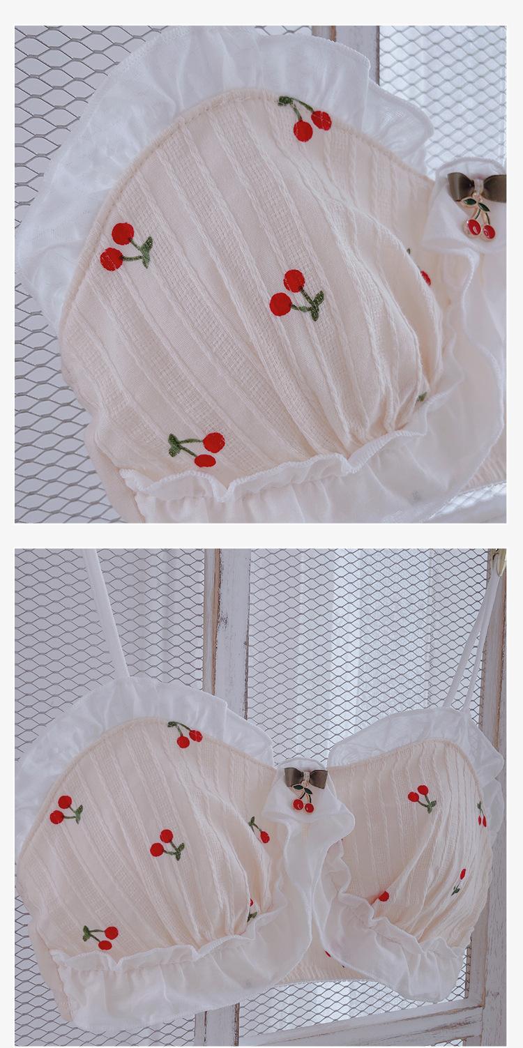 Ropa Interior Nueva Estilo Japonés para Mujer Pecho Pequeño Bordado de Cereza Dulce Fino Cómodo Transpirable Lindo Sujetador sin Aros para Niñas