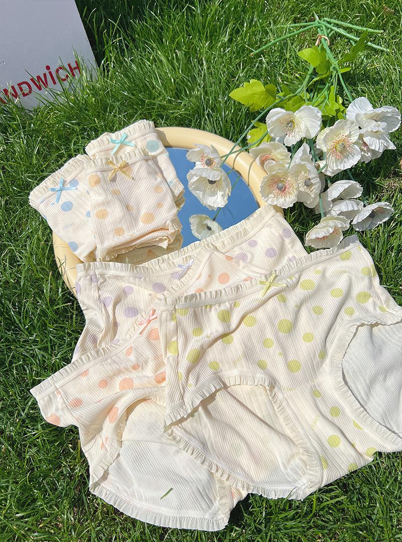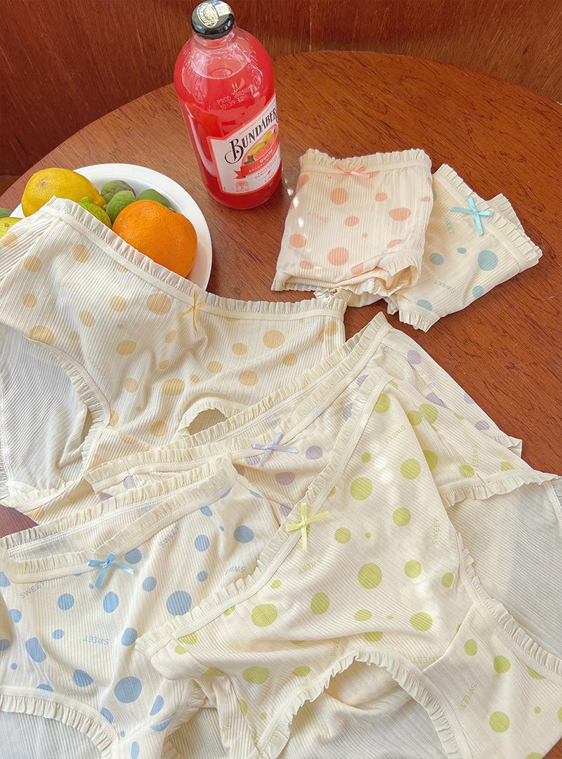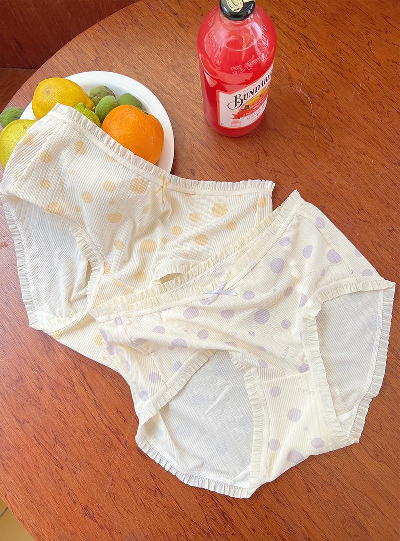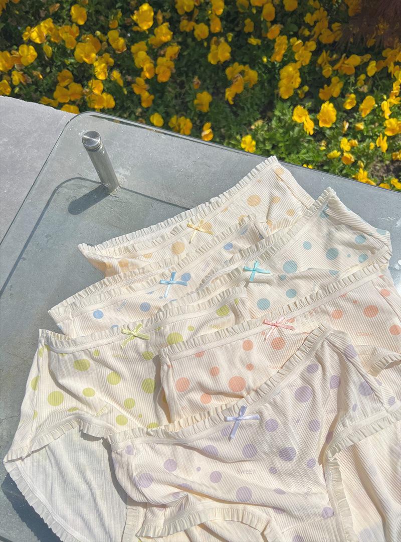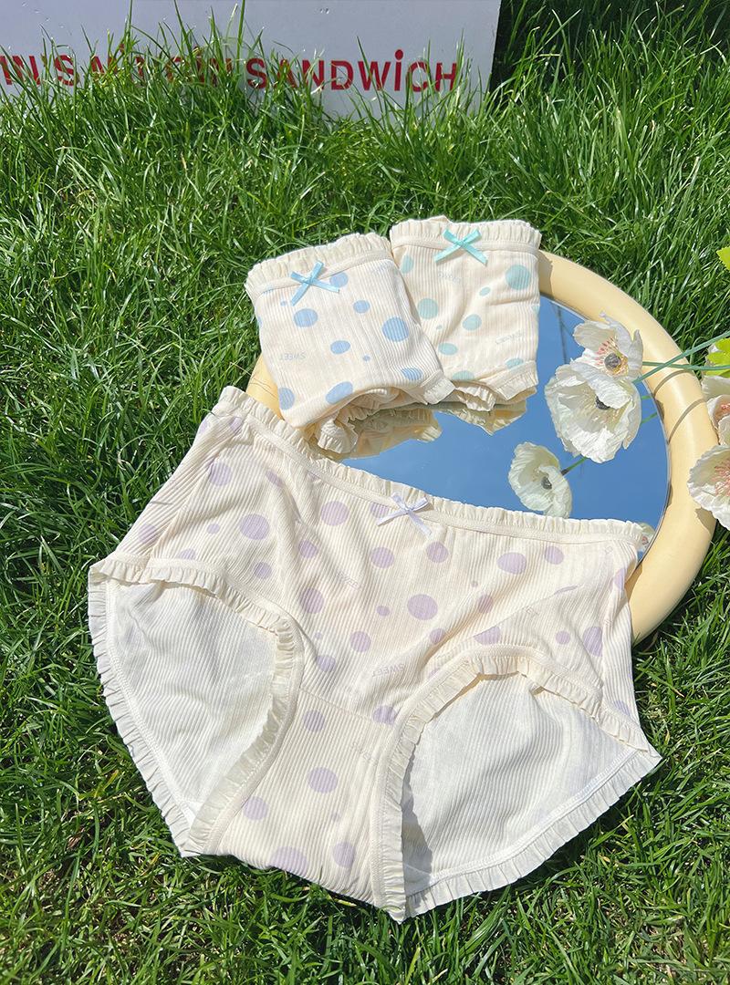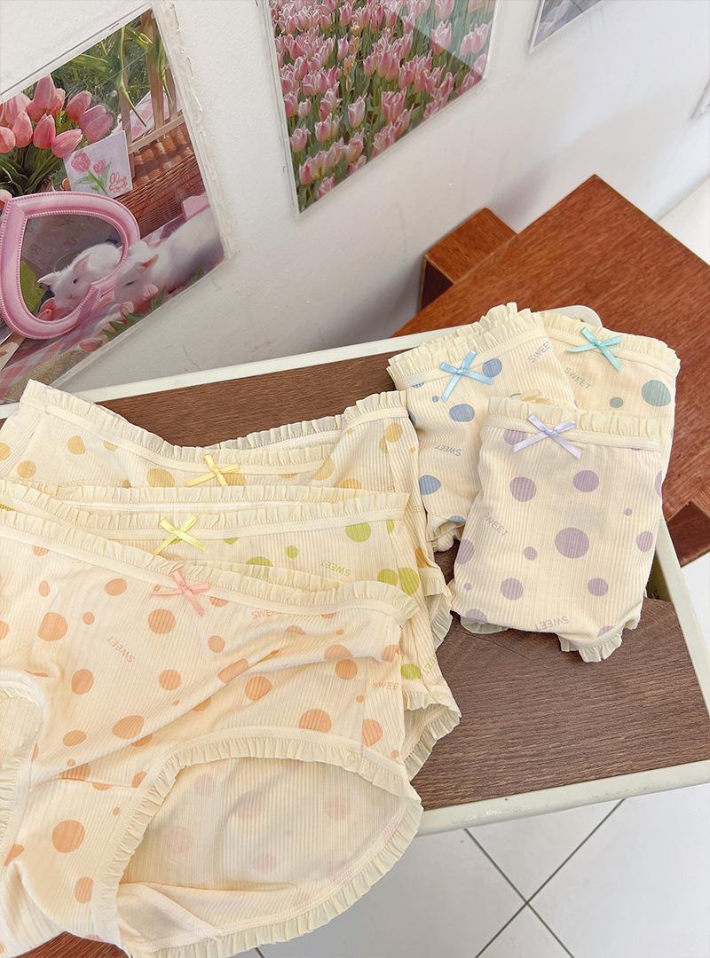 Ropa Interior para Mujer Modal Suave Ceroso Sin Costuras Algodón Puro Entrepierna Antibacteriana Cintura Media Lunares Ondulados Algodón Puro Estilo Japonés Calzones para Niñas