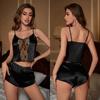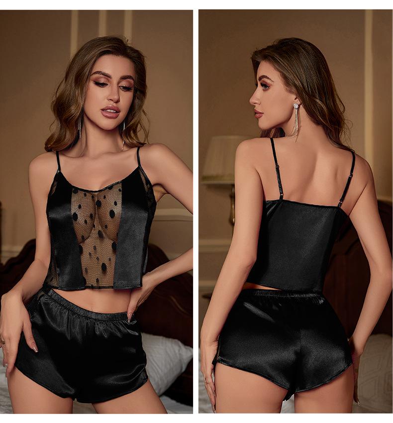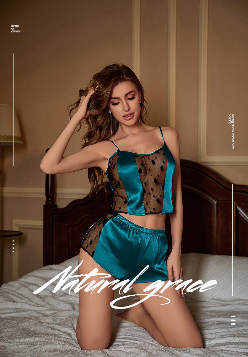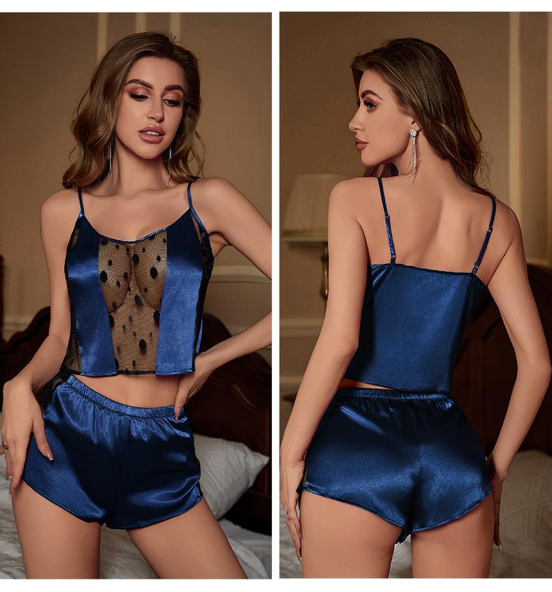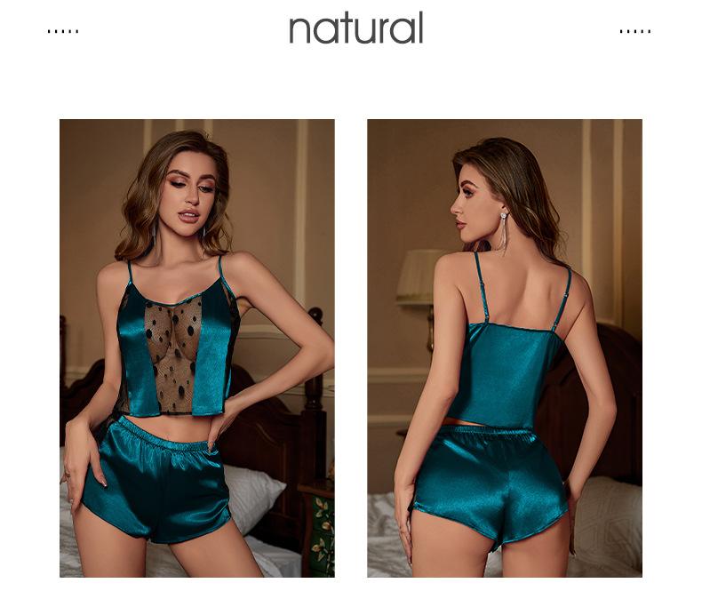 Yaoting Amazon Nuevo Pijama para Mujer Verano Encaje Empalmado Sexy Shorts de Tirantes Conjunto de Ropa para el Hogar para Mujer 3235