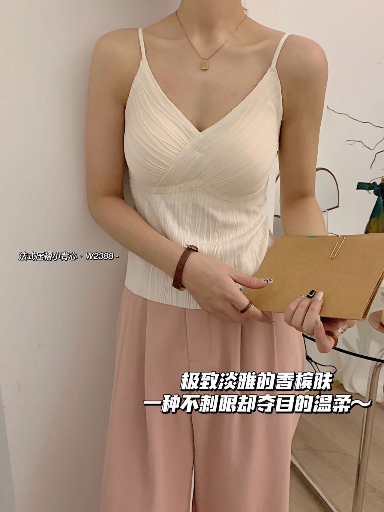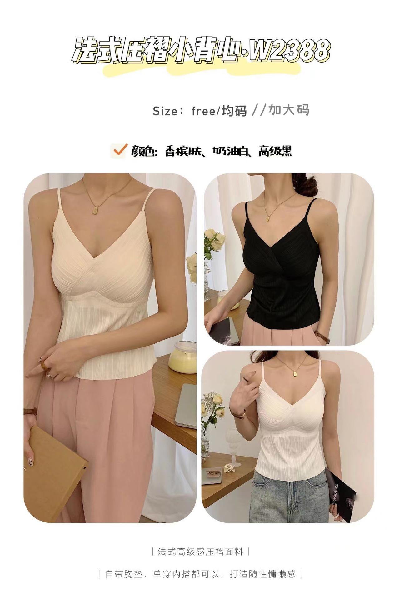 Chaleco Sexy con Cuello en V para Mujer con Ropa Interior Acolchada Push-Up, Sling Bottoming Envolvente de Pecho, Espalda Hermosa, Ropa Exterior, Estilo Francés