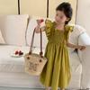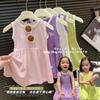 Nuevo vestido de verano 2024 para niñas, bonito vestido de dibujos animados, camiseta, falda de manga corta con lazo de princesa.