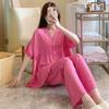 Pijamas de seda de algodón para mujer, ropa de verano fina de manga corta con estampado de dibujos animados, estilo coreano, talla grande, informal, cómoda, para el hogar