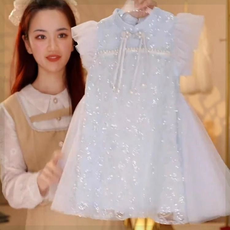 Vestido de niña Verano 2024 Nuevo estilo Ropa de rendimiento Cumpleaños infantil Vestido de princesa Vestido de verano para niña Moda