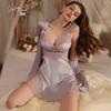 Pijama sexy Ruoruo de terciopelo con escote en V profundo y encaje transparente con tirantes de puro deseo, camisón exterior, ropa de casa para mujer, traje 622