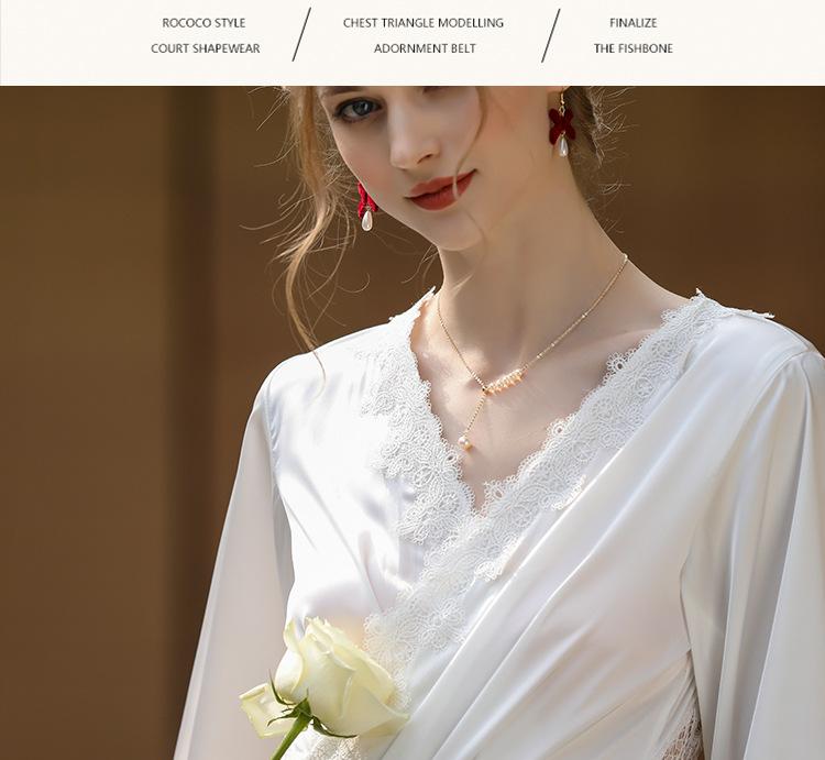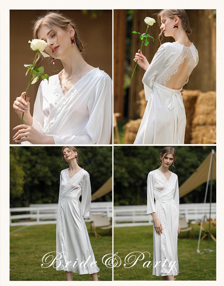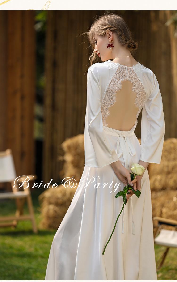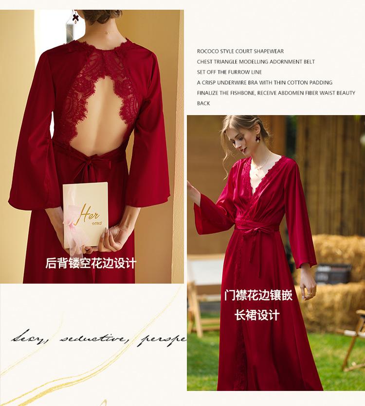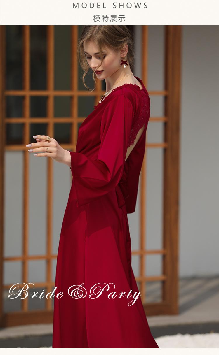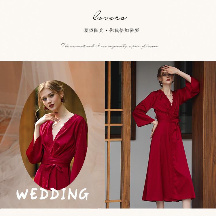 Bata de Vestir de Boda Femenina Novia Dama de Honor Seda de Hielo Camisón Largo Primavera y Otoño Boda Espalda Hermosa Rojo Pijamas Pijamas