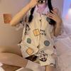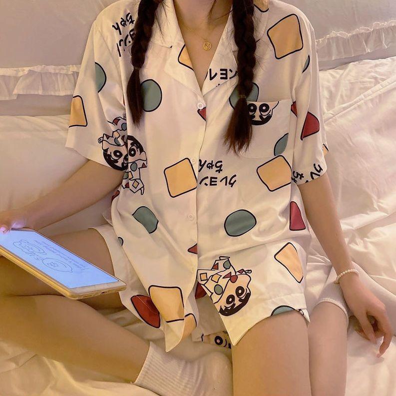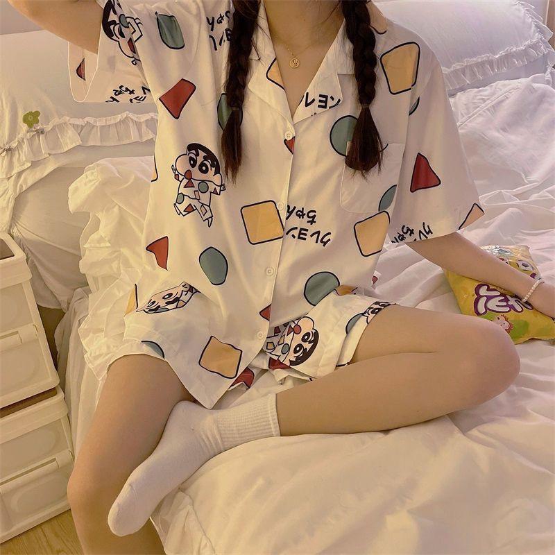 Pijamas de Dibujos Animados para Mujer Verano Nuevo ins Estilo Japonés Lindo Crayon Pequeño Ropa Nueva para el Hogar Estampado Delgado Traje de Manga Corta