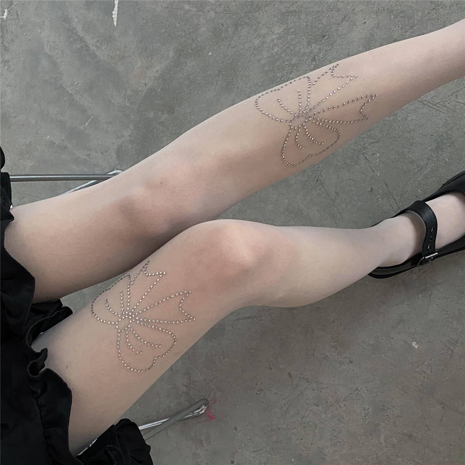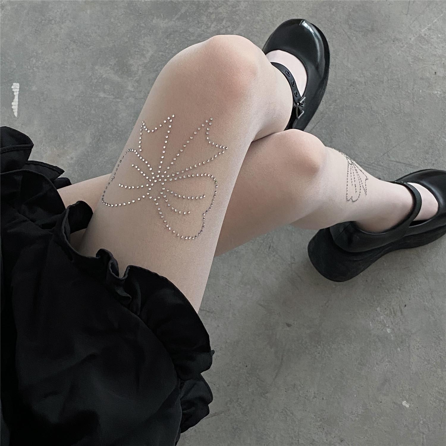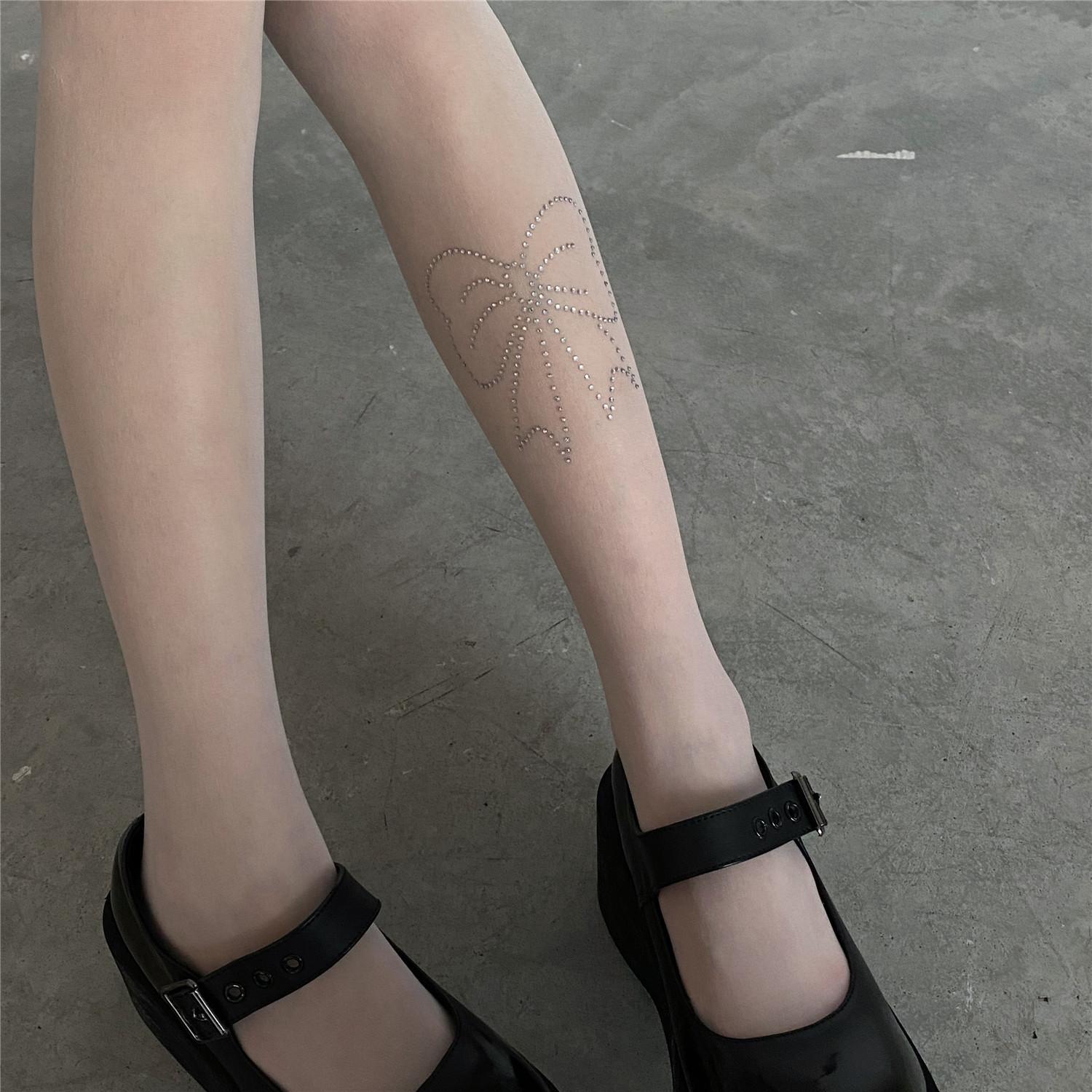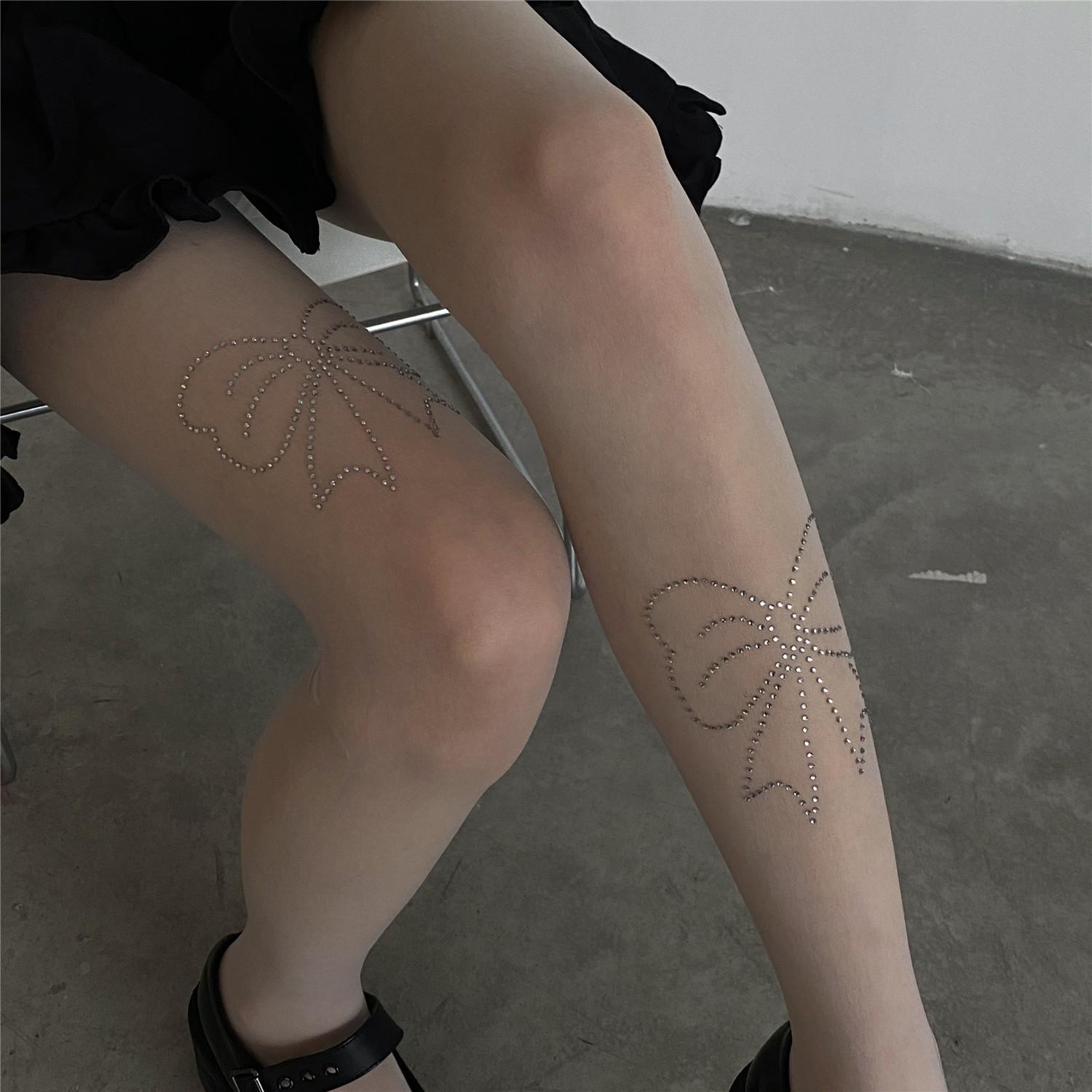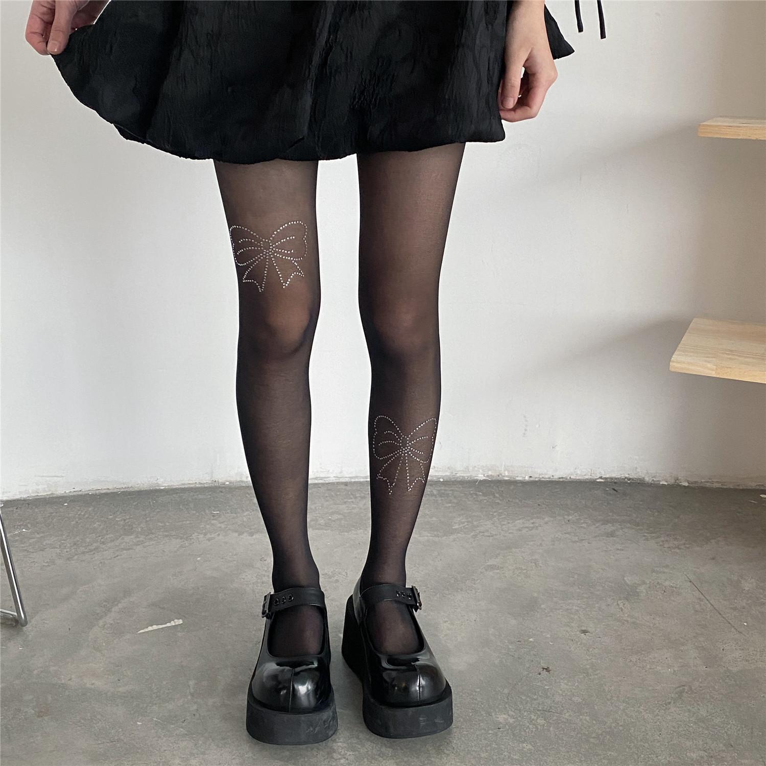 PATTKIN chicas sexys calcetines Diamante Negro medias finas pantimedias deseo puro lazo pedrería calcetines de mujer