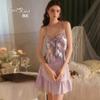 Vestido de Paja Encaje Elegante Francés Tirantes Delanteros Camisón Sexy Seda Imitación Satén Puro Deseo 1358