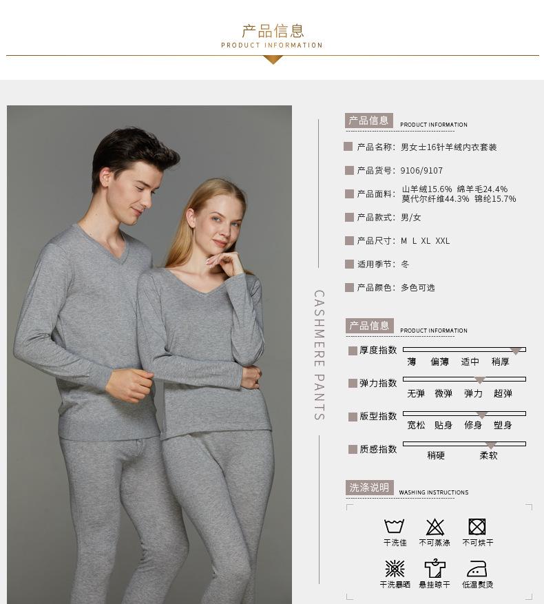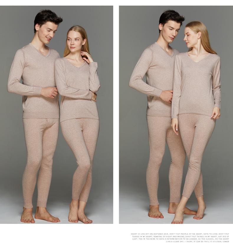 Dusen Deer King Ropa de Otoño de Cachemira Fina Sin Costuras para Hombre Set de Ropa Interior Térmica de Cachemira de 16 Agujas para Mujer Venta al por Mayor