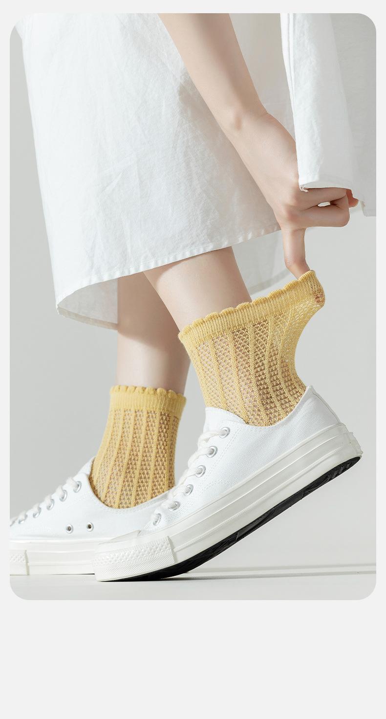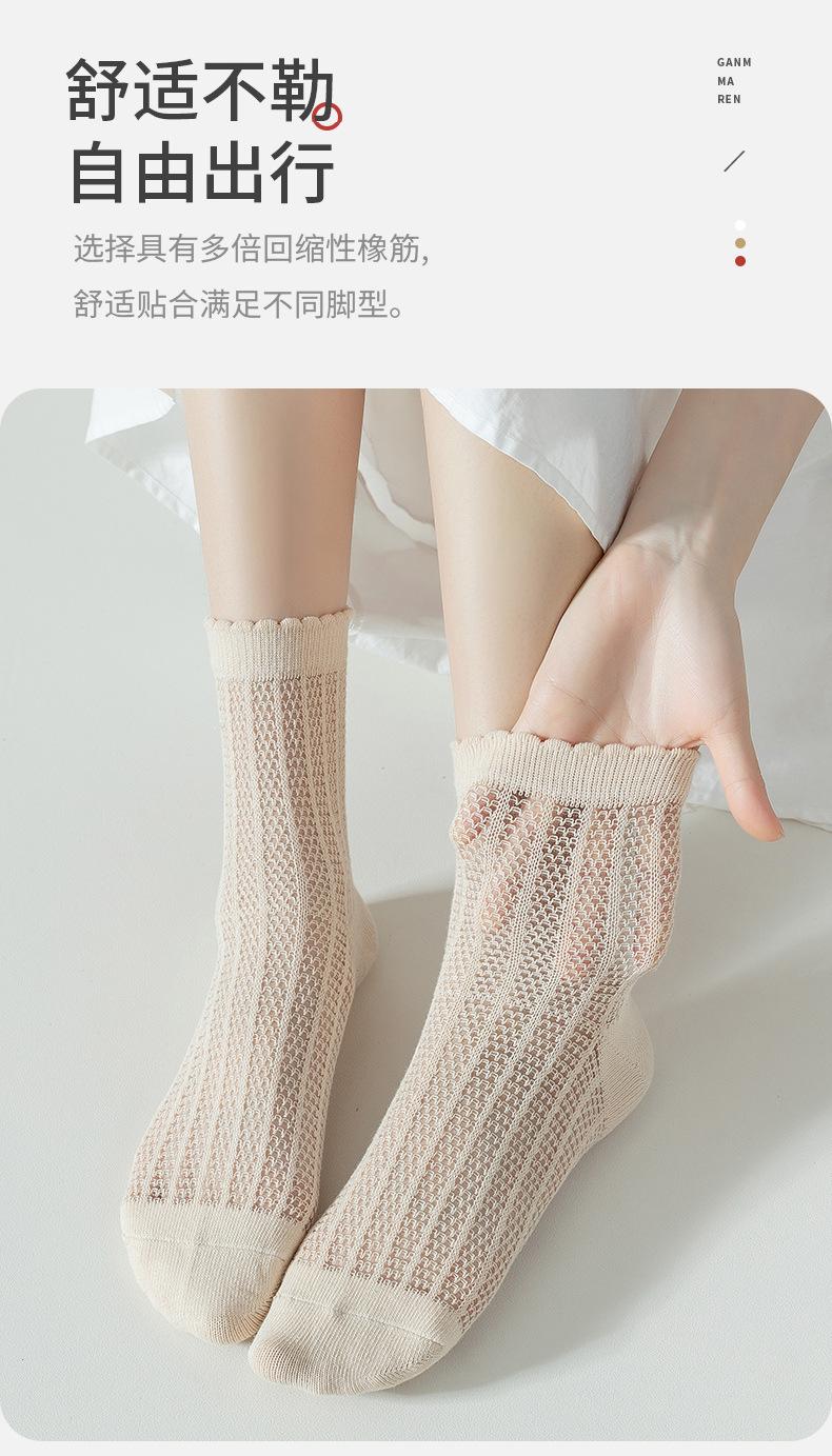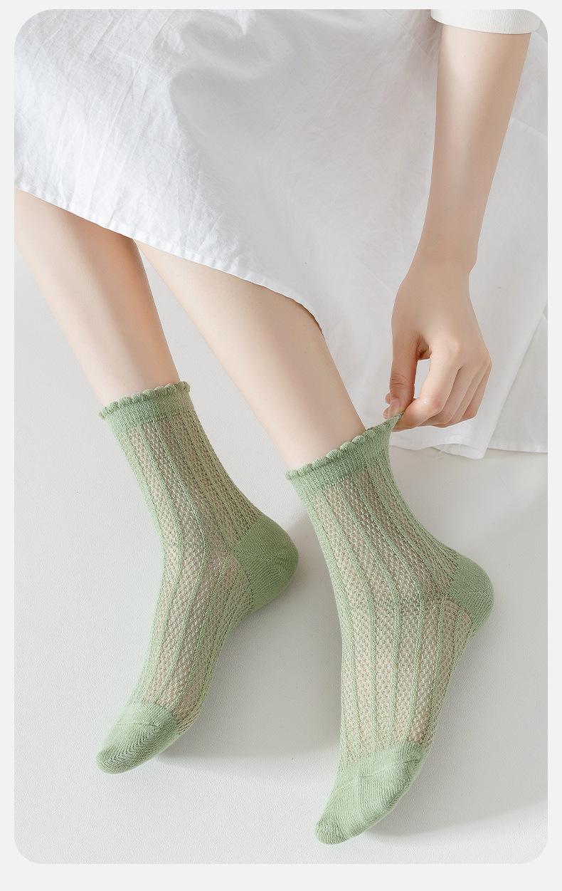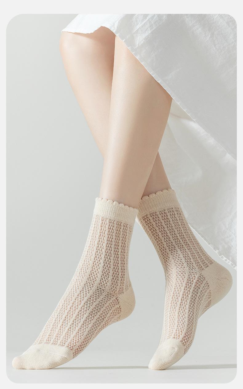 Calcetines de encaje para mujer, de verano, finos, hasta media pantorrilla, de algodón fino, desodorante, absorbentes del sudor, de malla, transpirables, para verano.