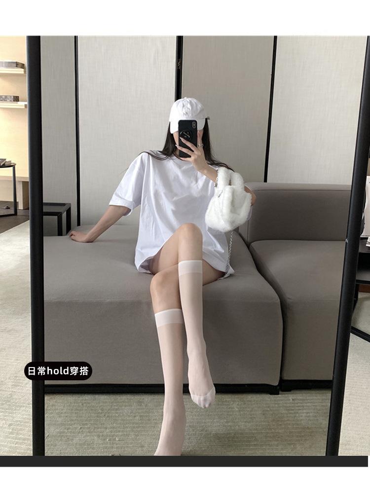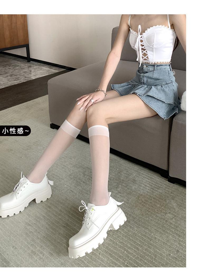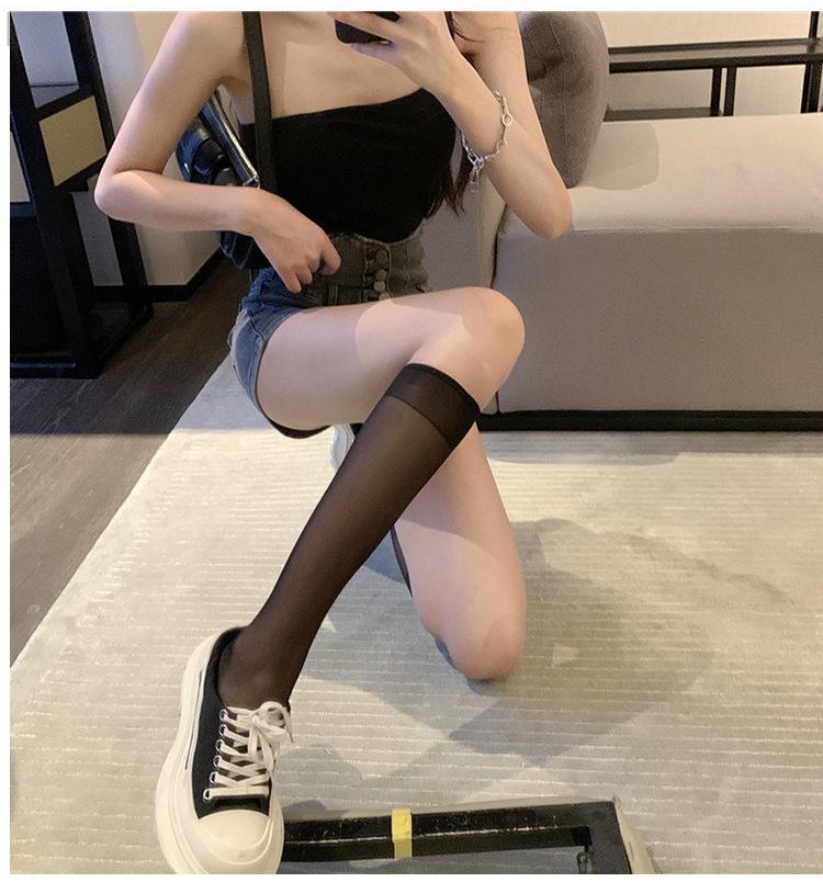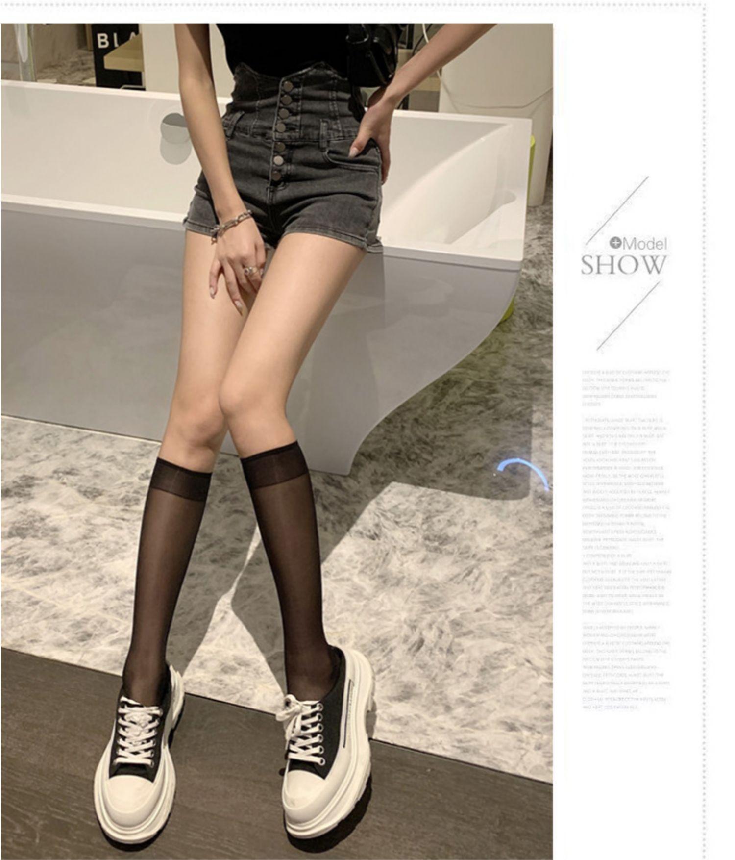 Medias de pantorrilla para mujer, medias blancas hasta la rodilla, finas, de verano, hasta la pantorrilla, negras, de verano