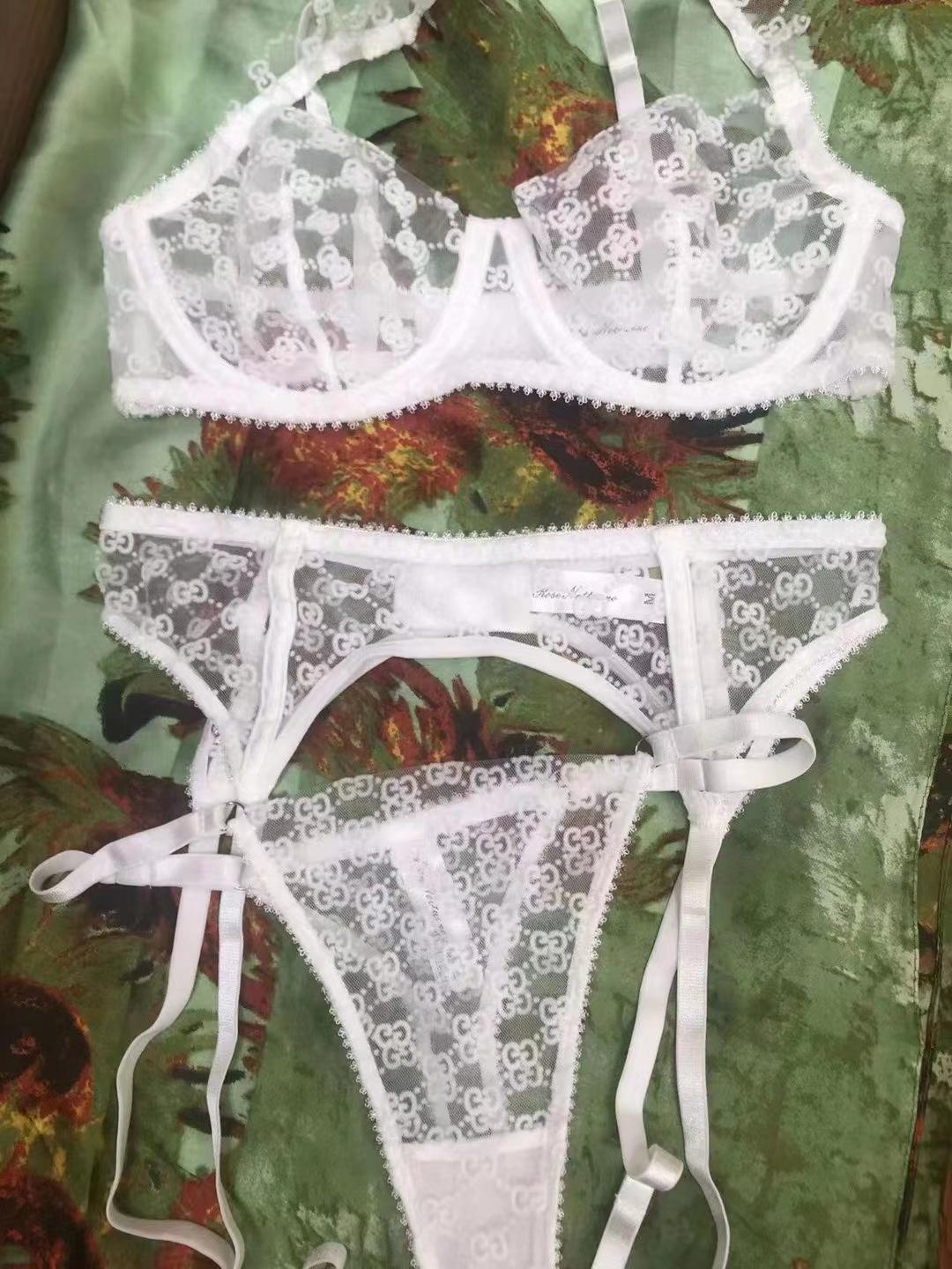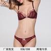 Ropa interior sexy transfronteriza con perspectiva ultrafina, pequeños hombros al aire, ropa interior de encaje bordado, pecho grande, pequeño sujetador antiflacidez, traje