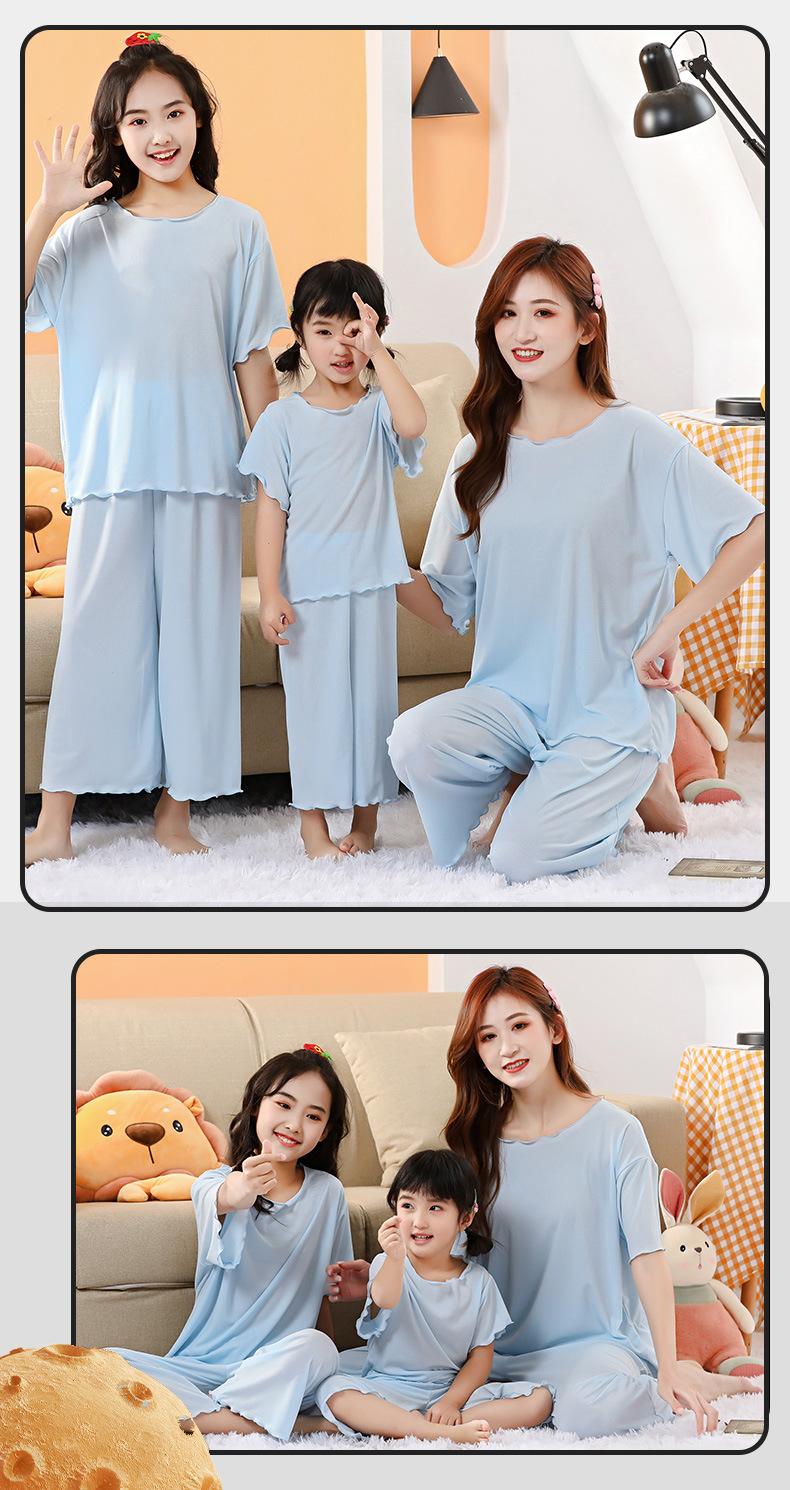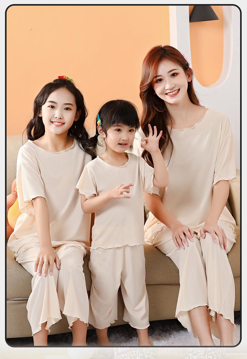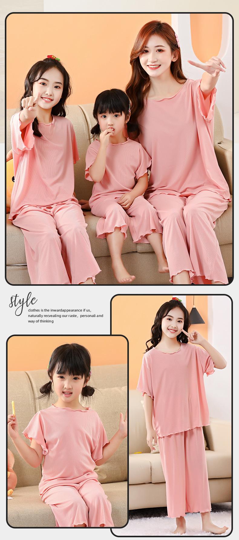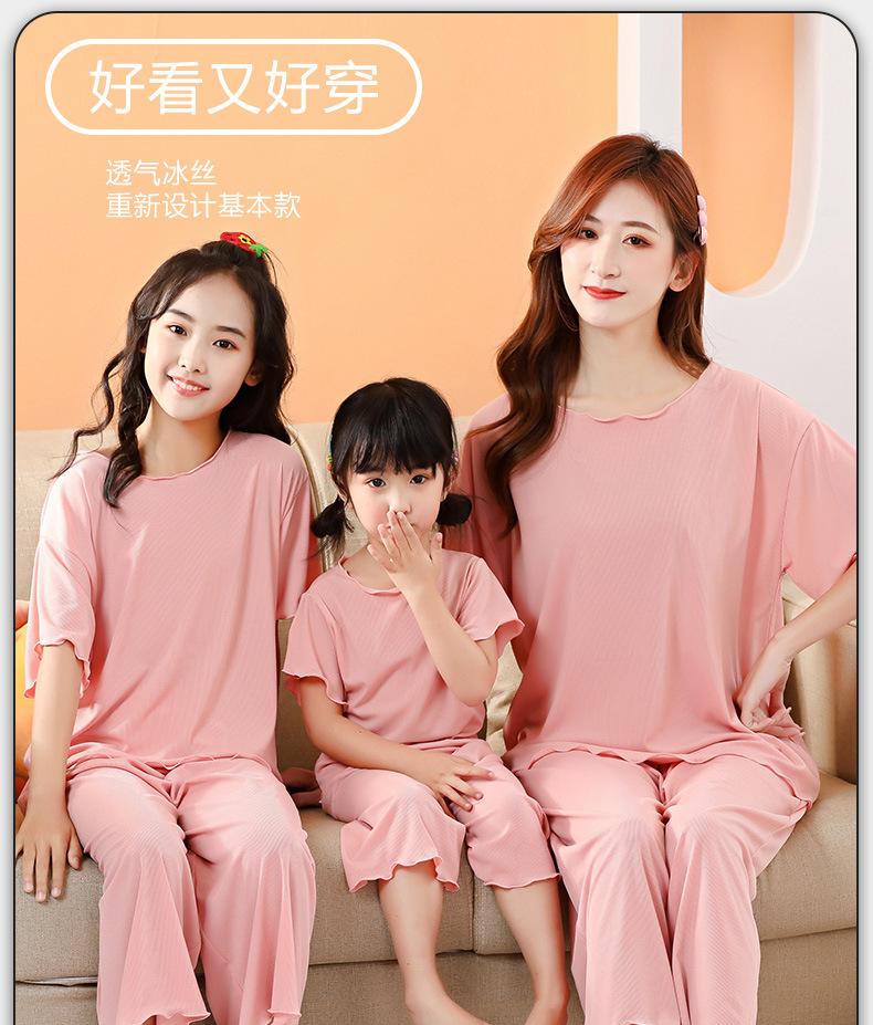 Conjunto de pijamas de verano para niños, ropa de casa, informal, holgada, de seda helada, de manga corta, para mujer y hombre.