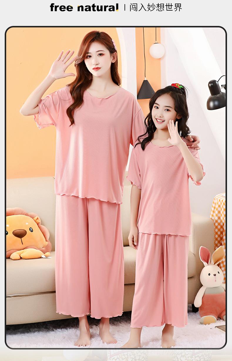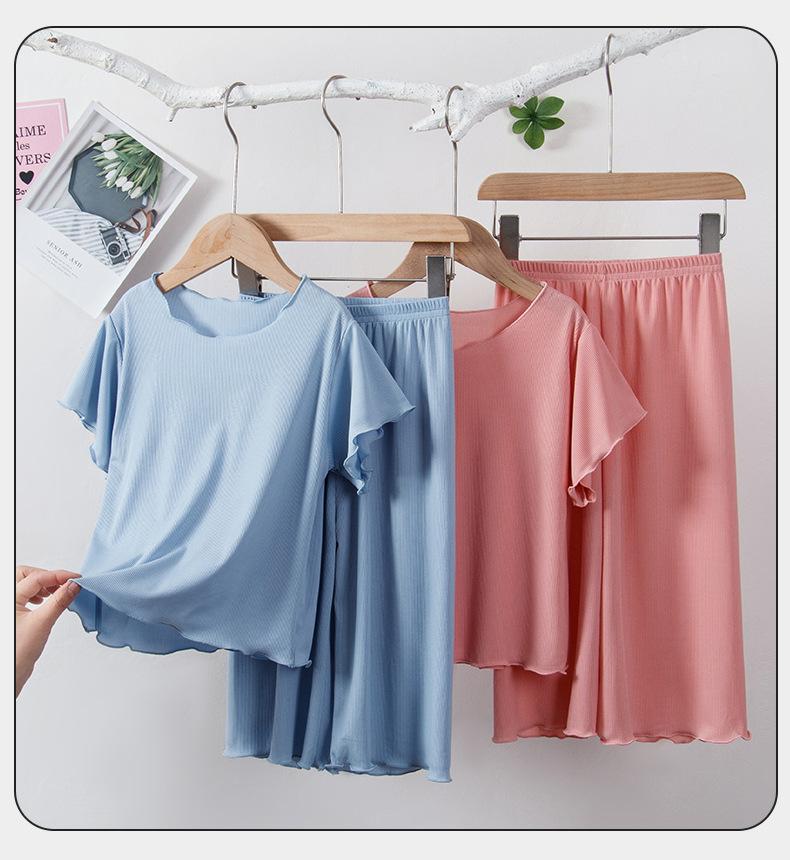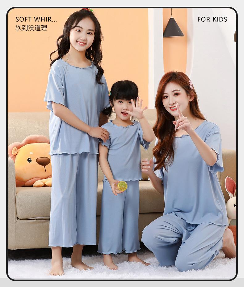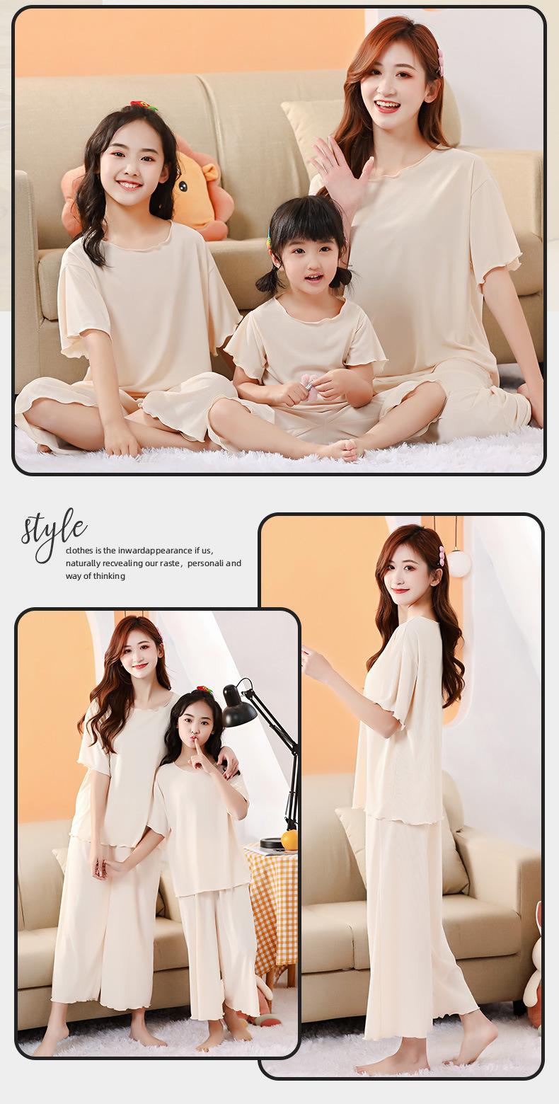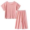 Conjunto de pijamas de verano para niños, ropa de casa, informal, holgada, de seda helada, de manga corta, para mujer y hombre.