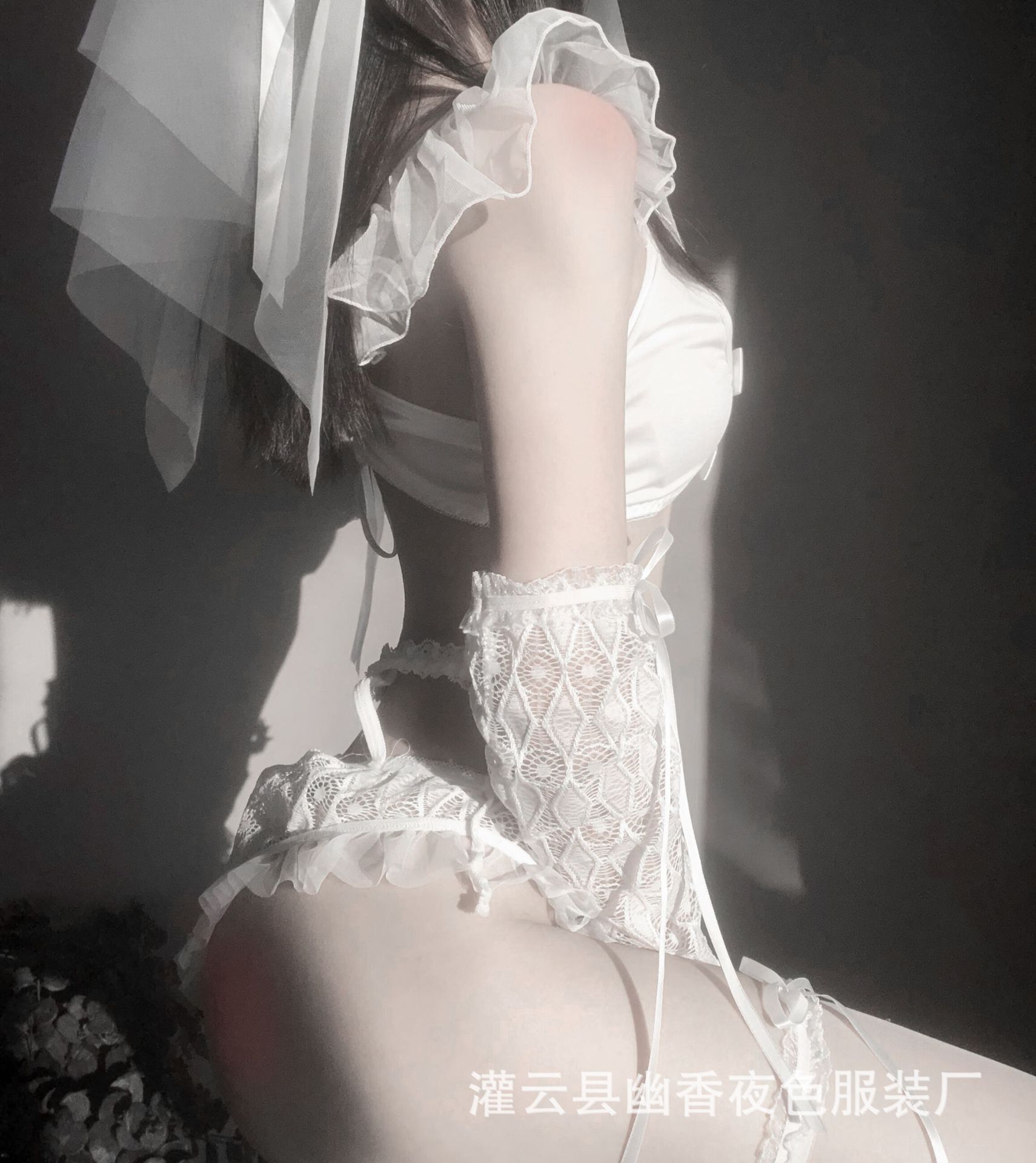 Lin linting nueva lencería sexy sexy encaje de tres puntos guantes nupciales de boda de una pieza entrega