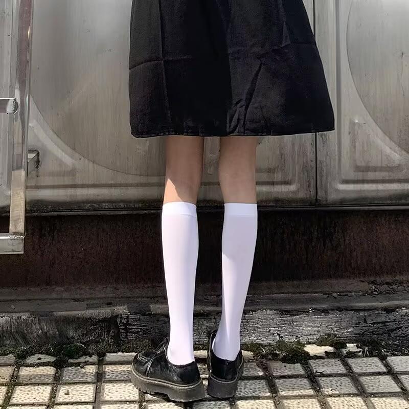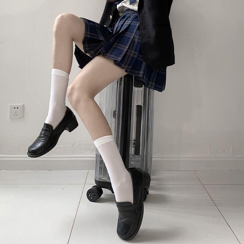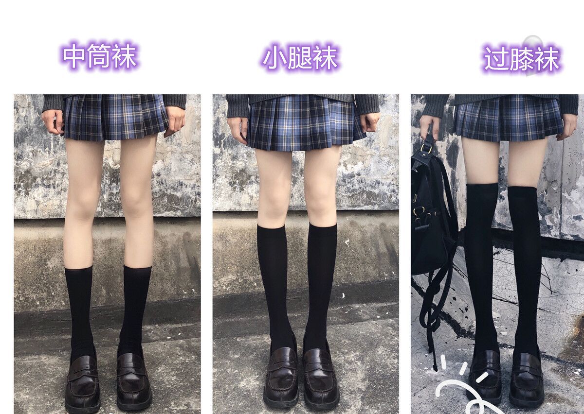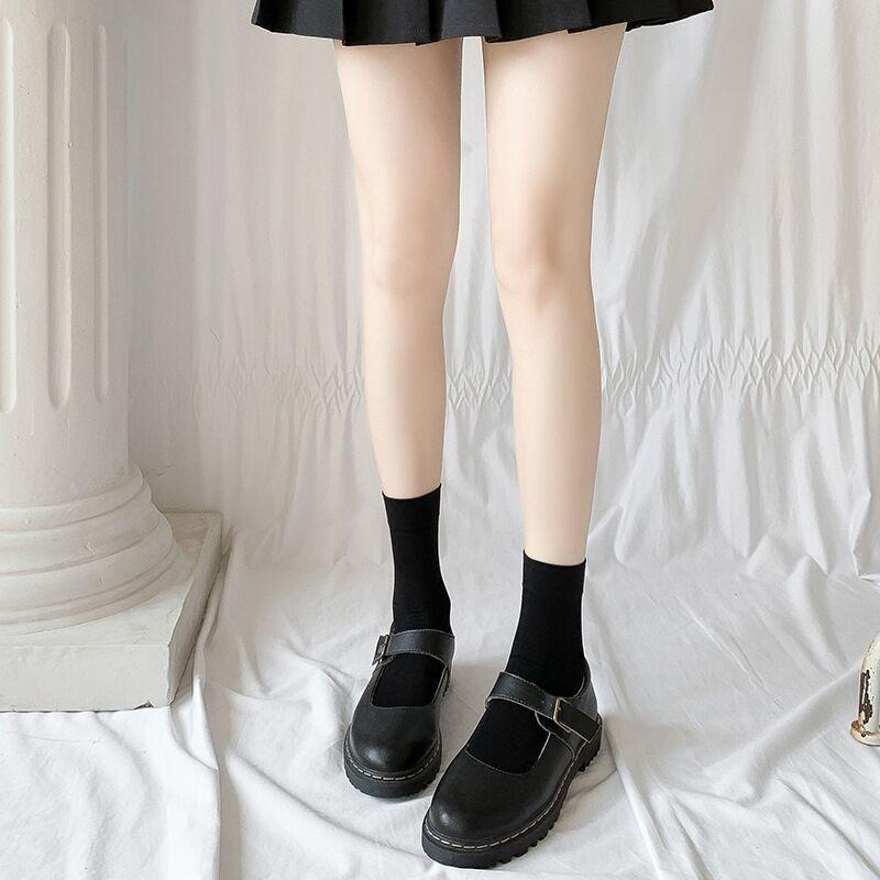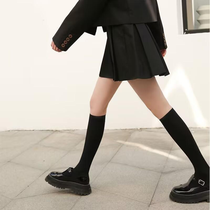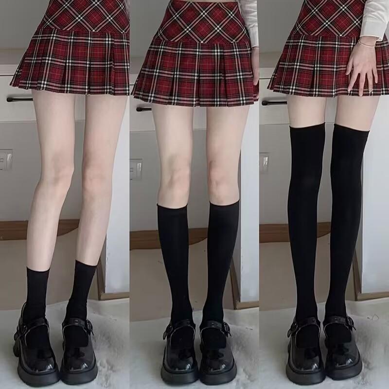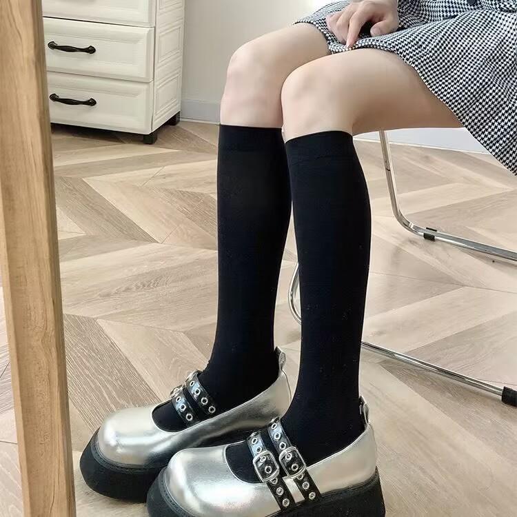Calcetines de terciopelo para mujer, calcetines finos de pierna, calcetines negros japoneses de tubo medio y alto, calcetines hasta la rodilla.