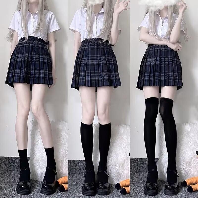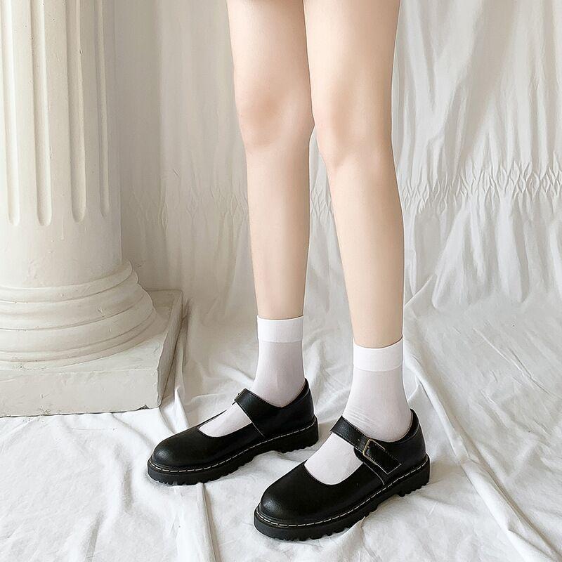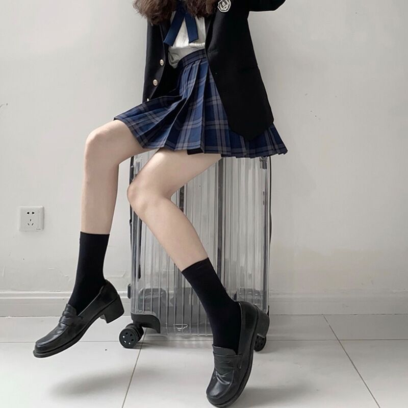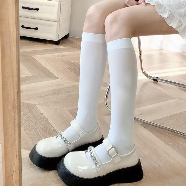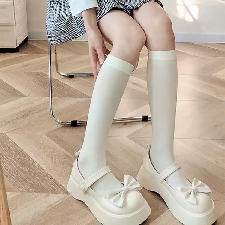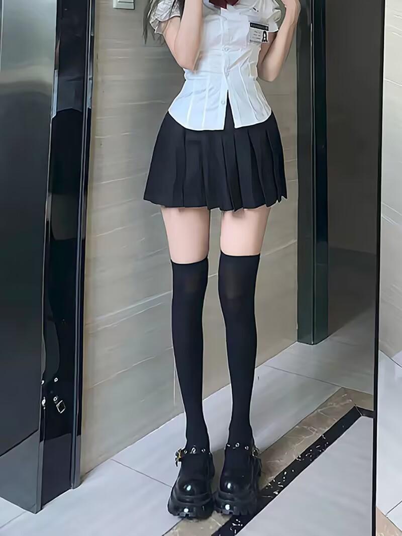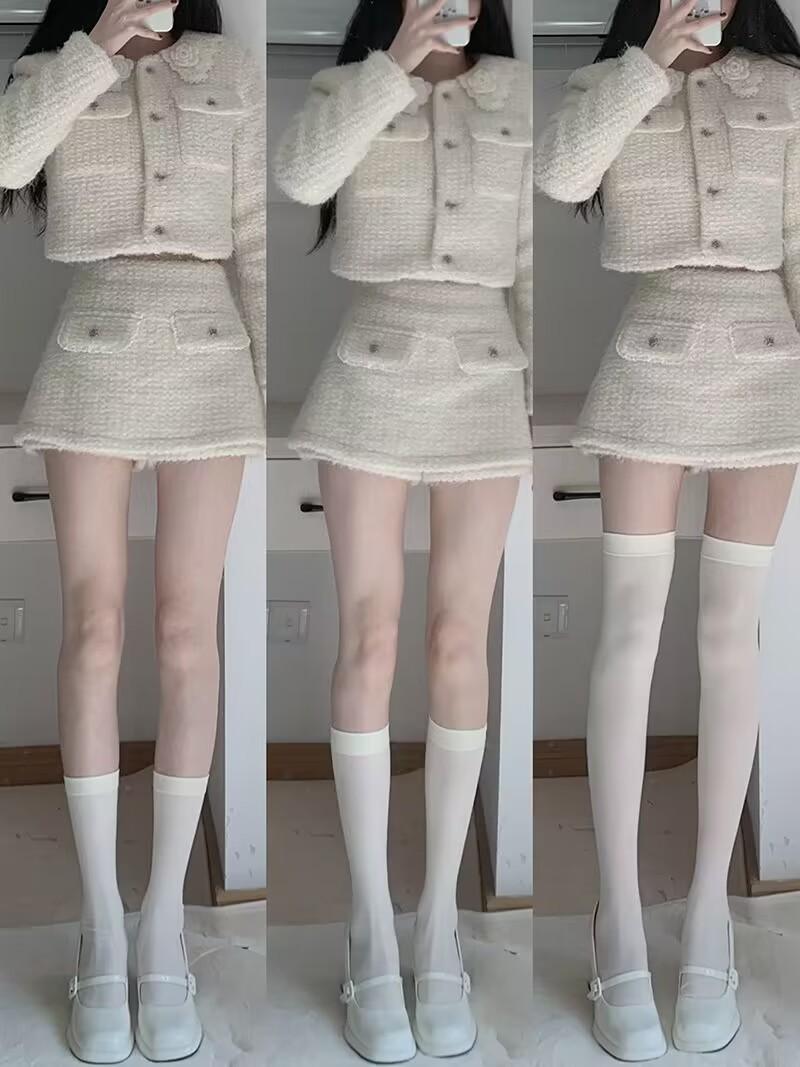 Calcetines de terciopelo para mujer, calcetines finos de pierna, calcetines negros japoneses de tubo medio y alto, calcetines hasta la rodilla.