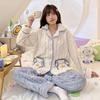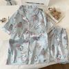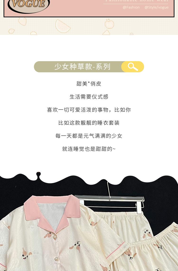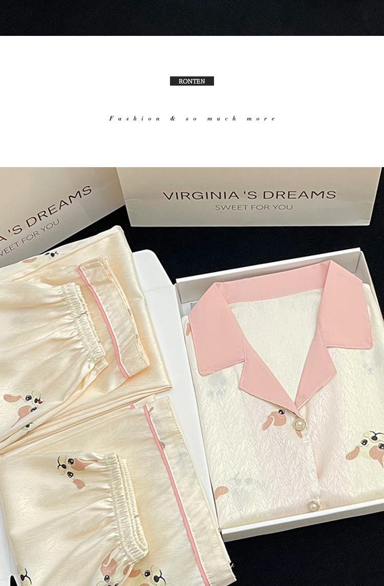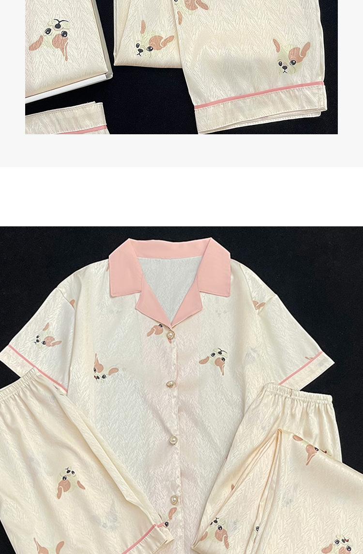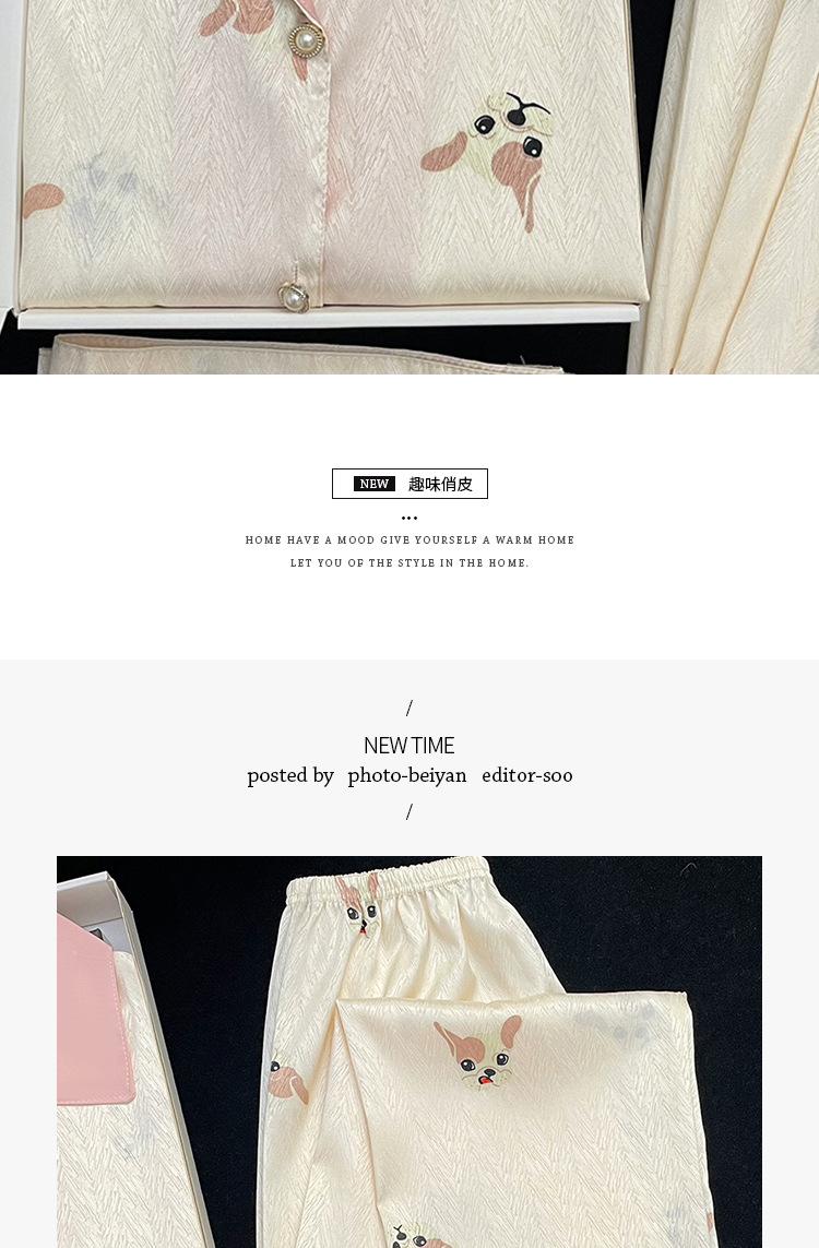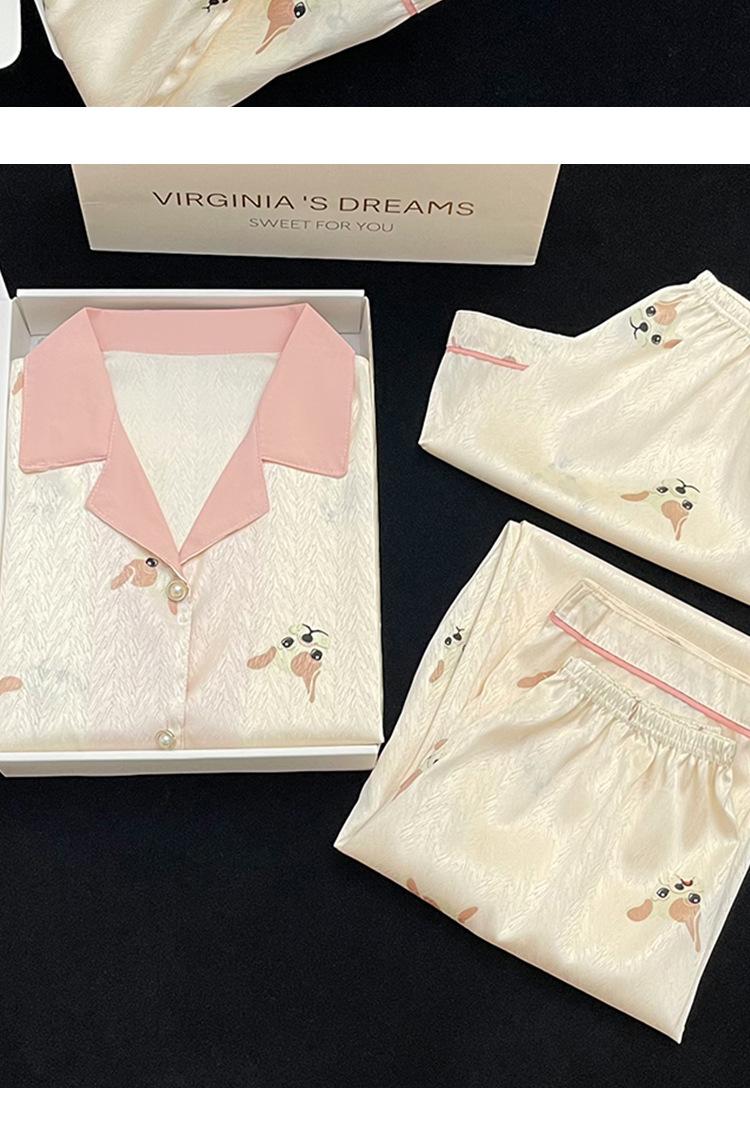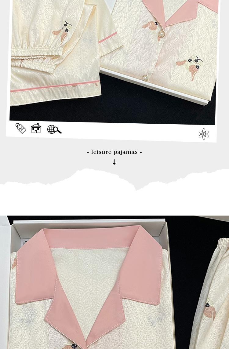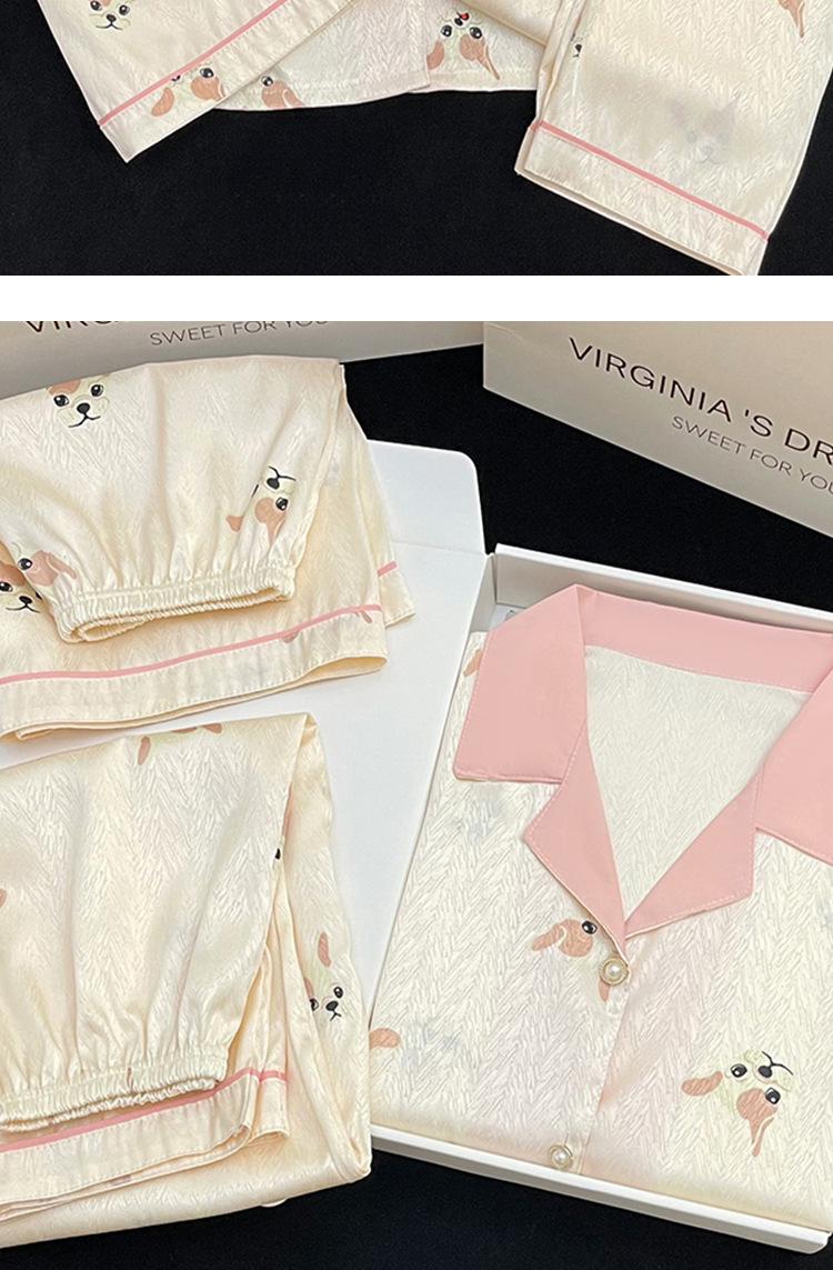 Nuevos pijamas de seda de hielo para mujer, primavera y otoño, manga larga, lindo perrito lechero, adorable conejo, ropa para el hogar, conjunto de dos piezas para mujer, venta al por mayor