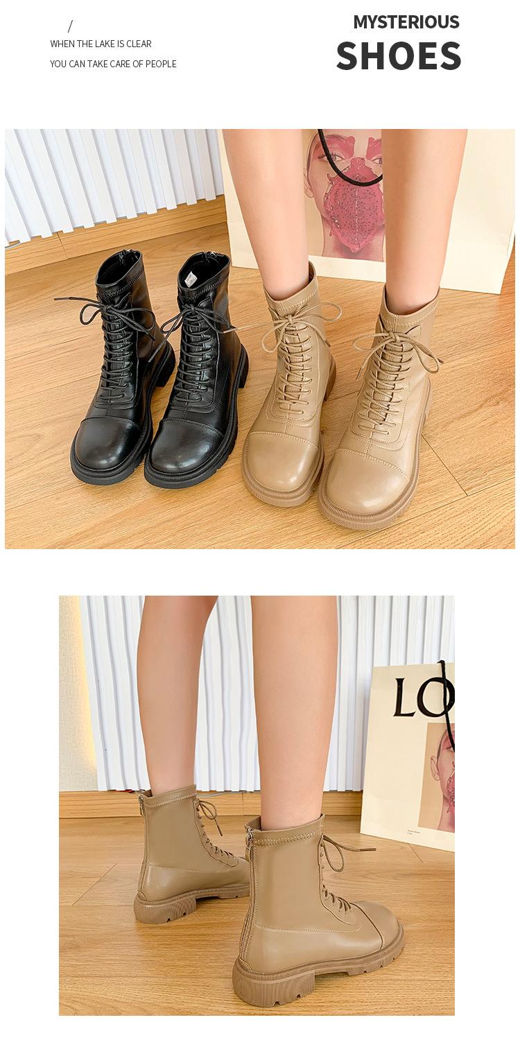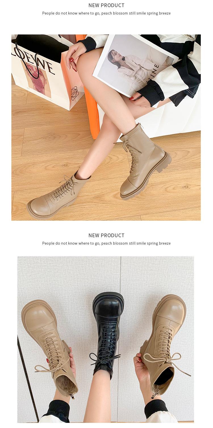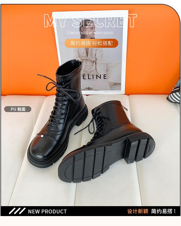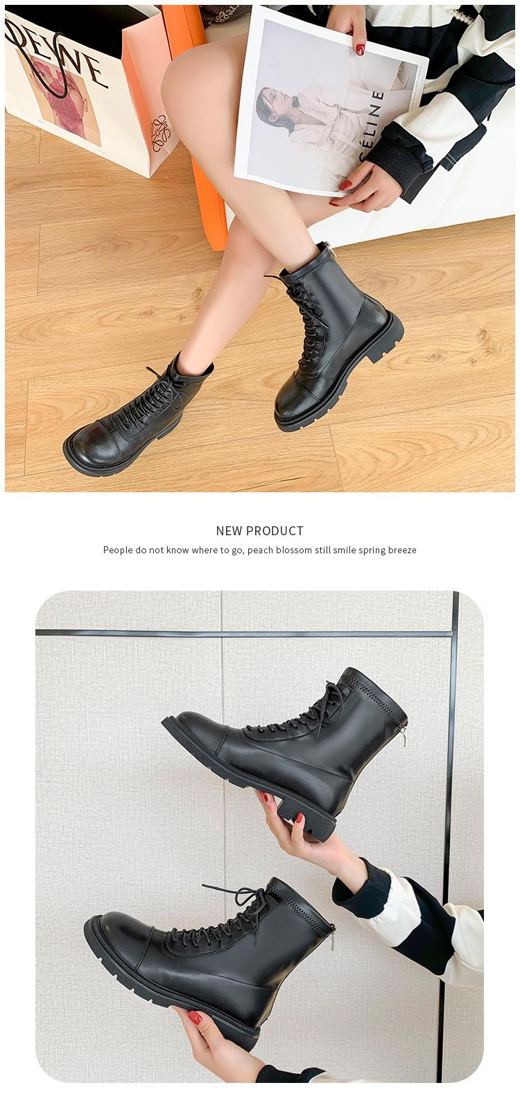 Botas de Mujer 2022 Otoño e Invierno Nueva Llegada Cremallera Trasera Casual Botas Martin de Mujer Estilo Británico Planas Botas Mineras Look Delgado Botas de Mujer