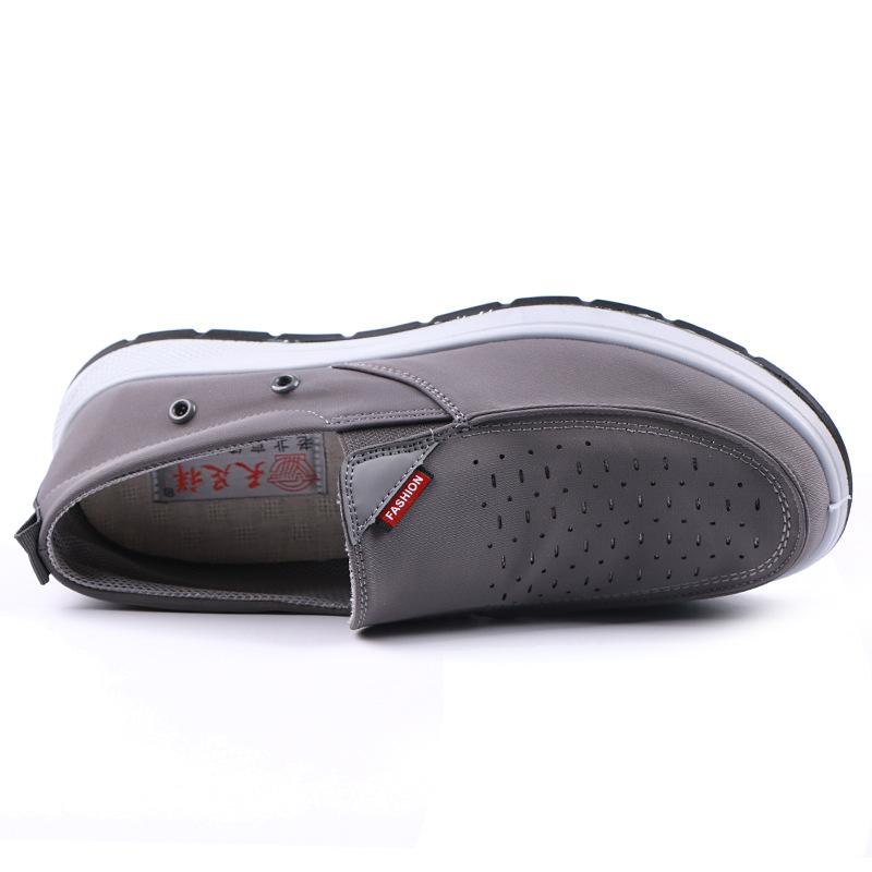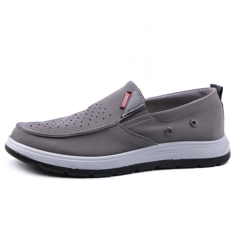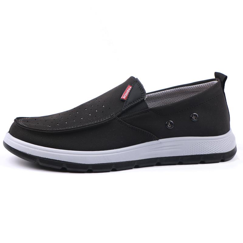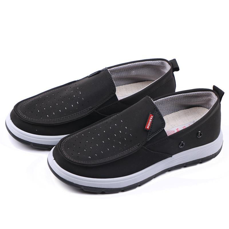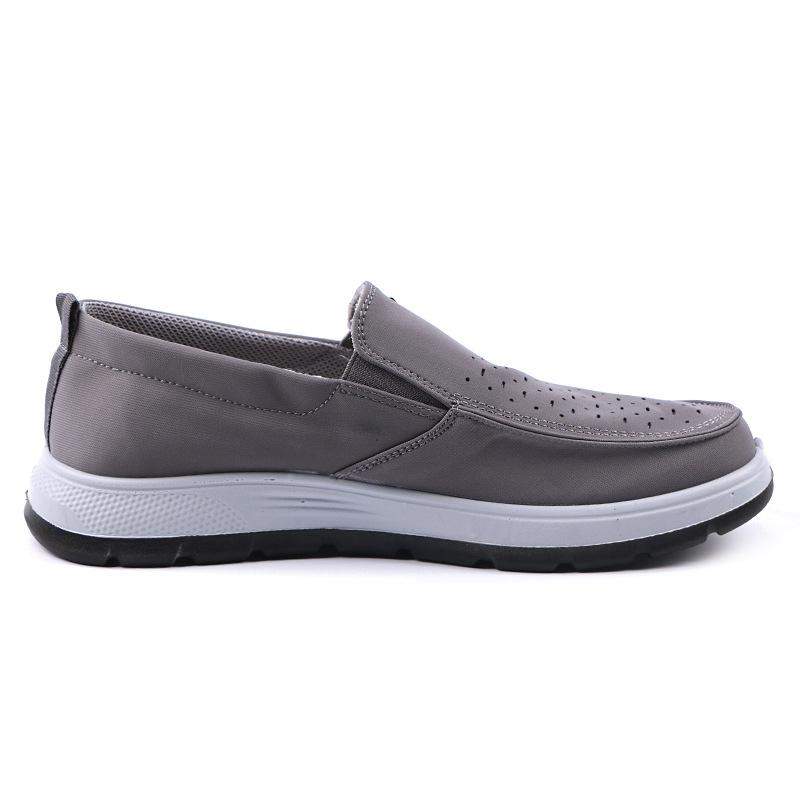 Zapatos casuales sin cordones para hombre, transpirables y perforados, de tela antigua de Beijing, de malla, calados, para verano