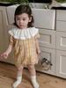 Mono de cuello de encaje para niña, ropa fina coreana para niños, mono de bebé de verano a cuadros para bebé