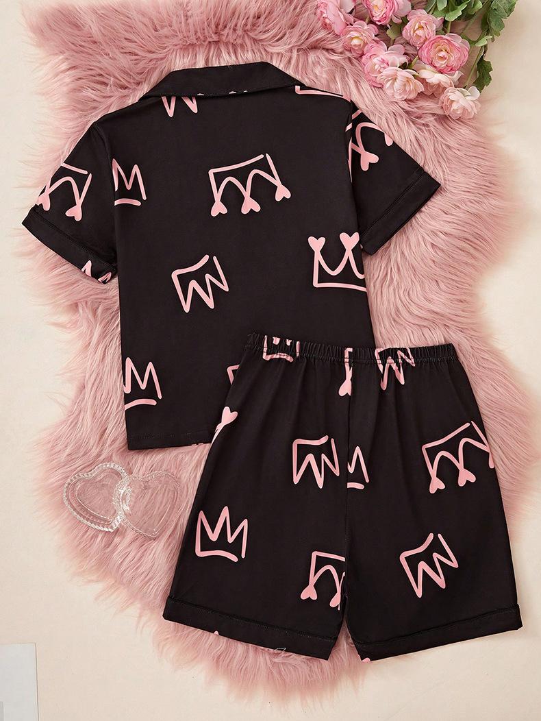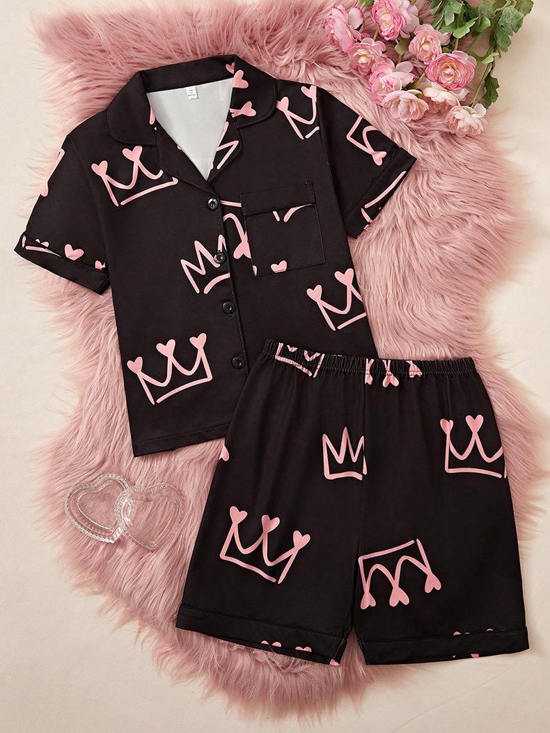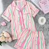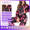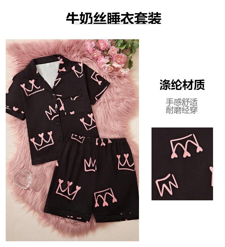 Traje de pijama fino para niños transfronterizo europeo y americano de verano de manga corta holgado tipo cárdigan de seda de leche estampado para ropa de casa