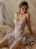 Pijama sexy para mujer con cinta de hielo y almohadillas para el pecho, camisón de encaje con tirantes, estilo Pure Desire 2024, nuevo estilo de seda para el hogar.