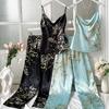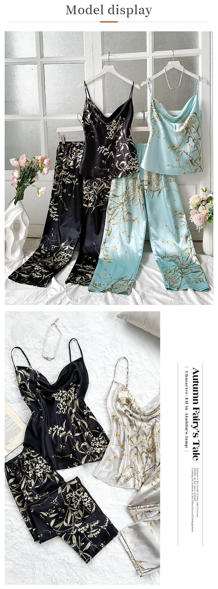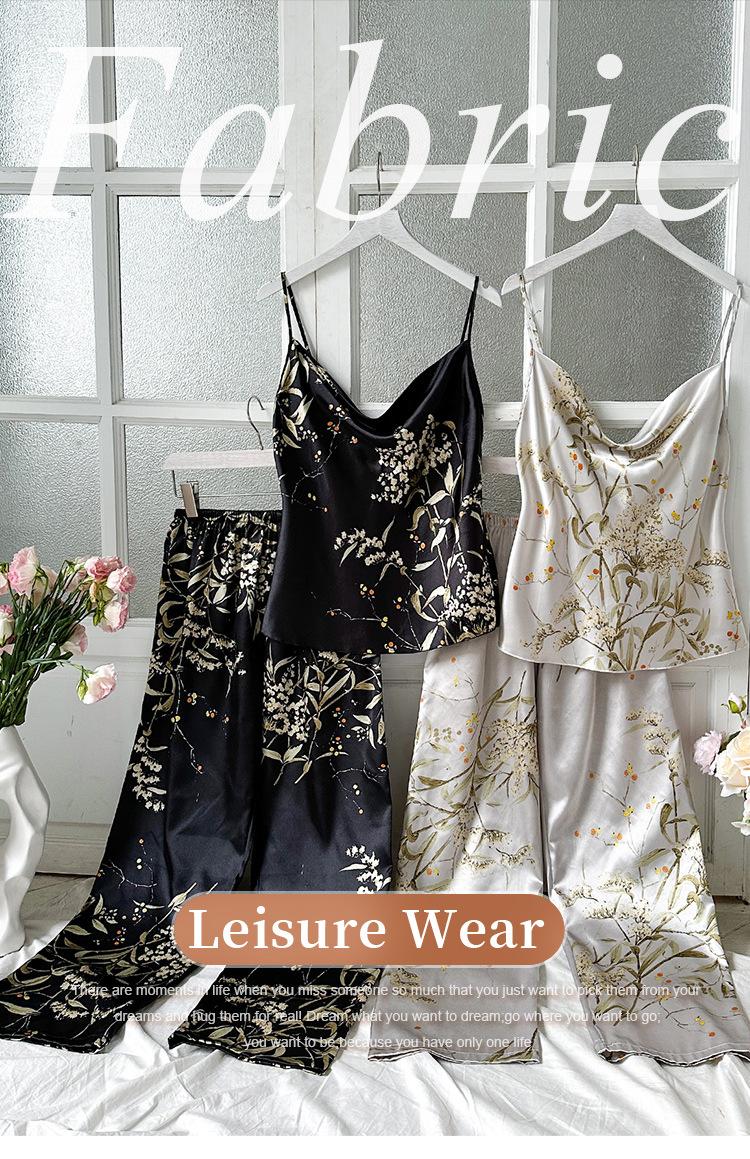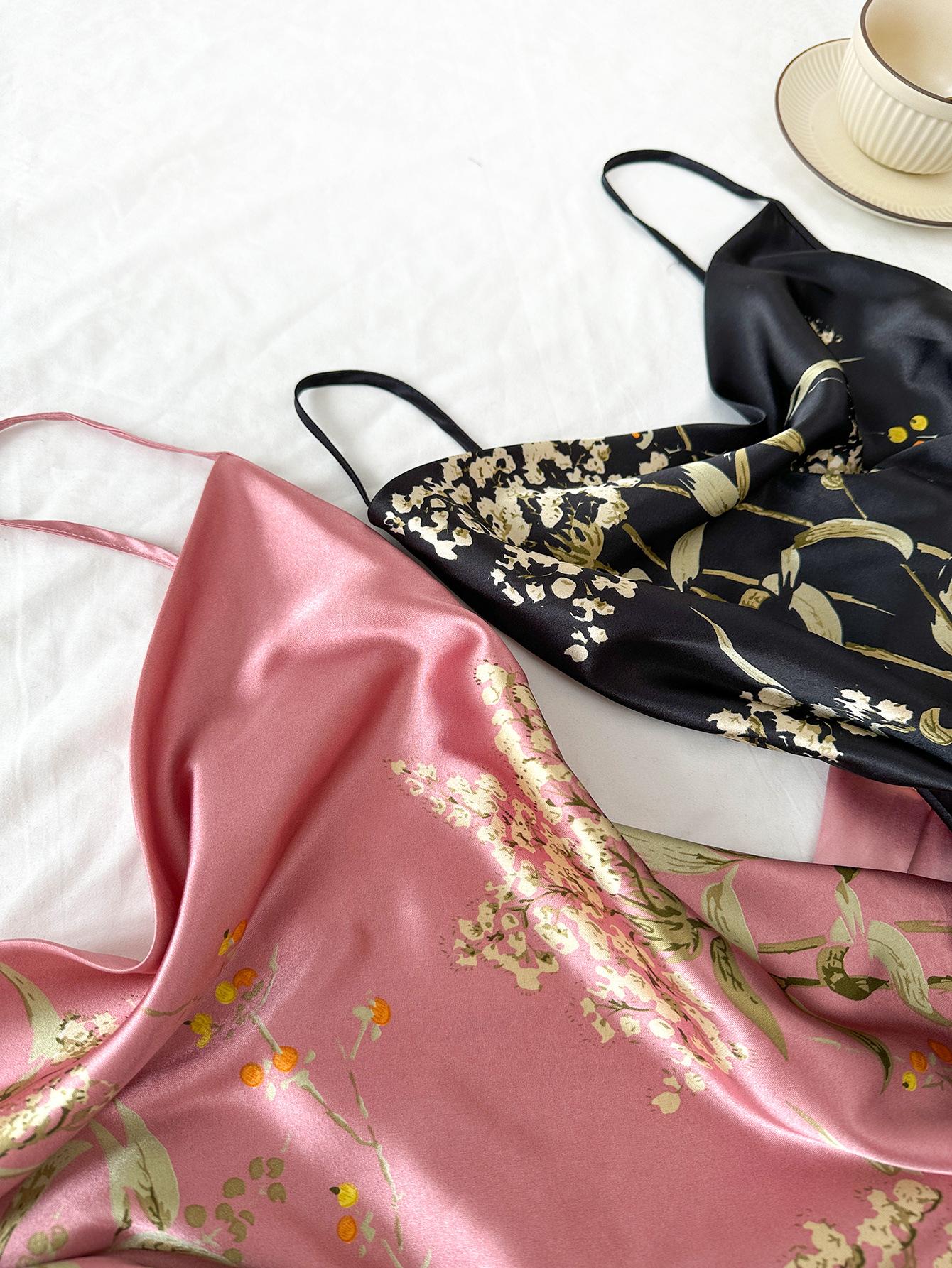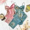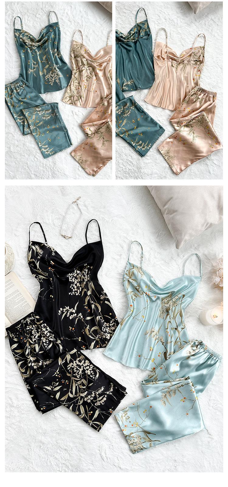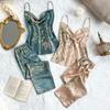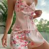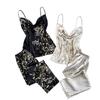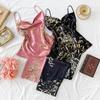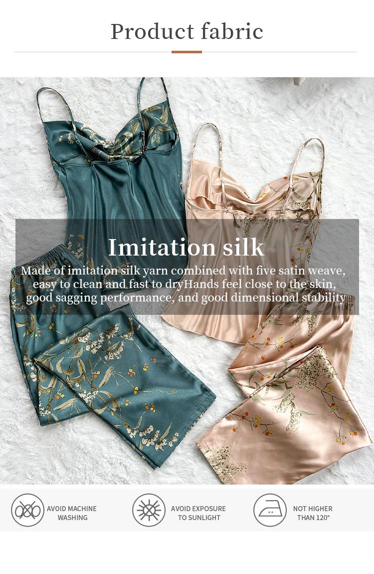 Pijamas de seda con estampado de flores, pantalones cortos, pijamas de verano informales sin espalda, ropa de casa