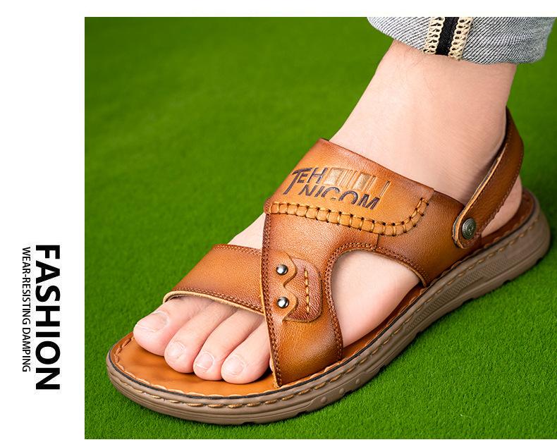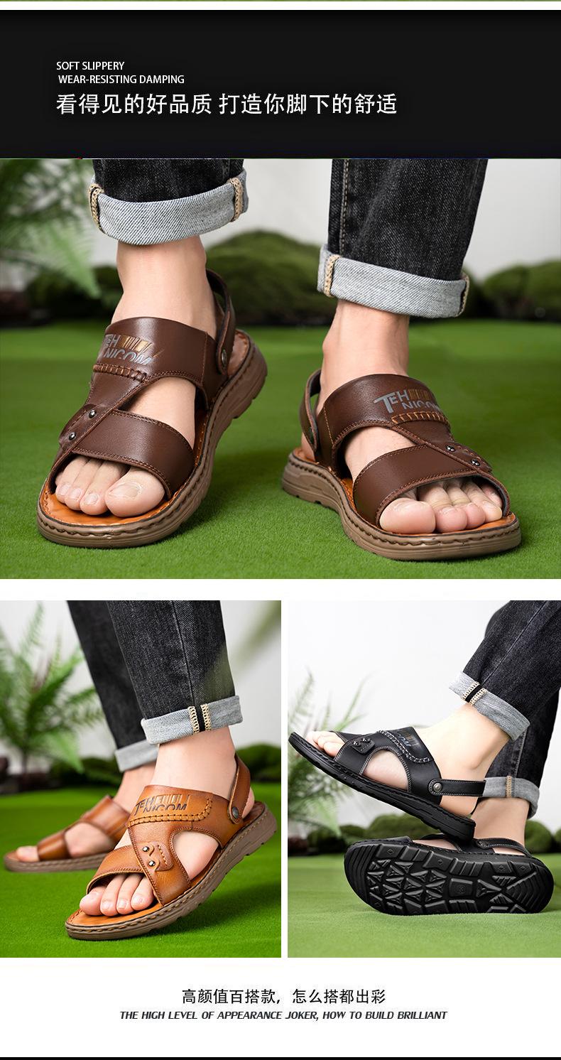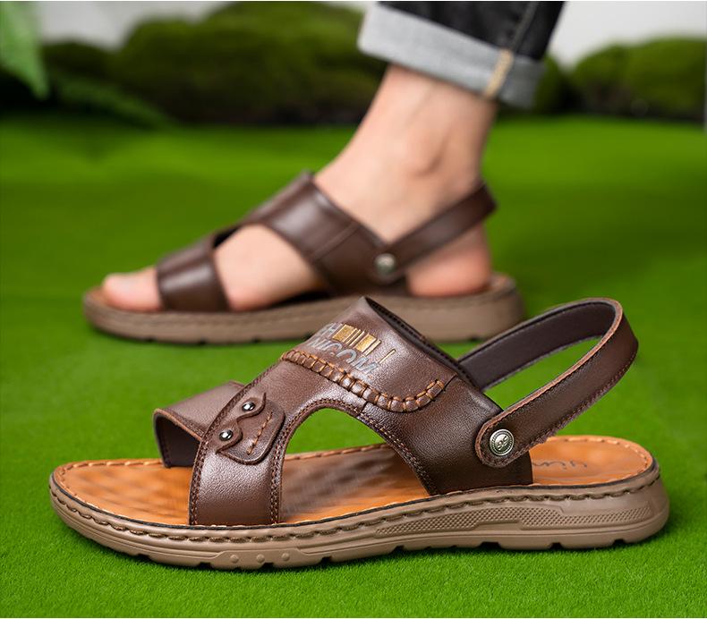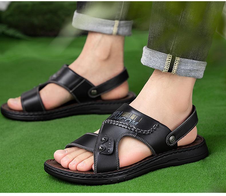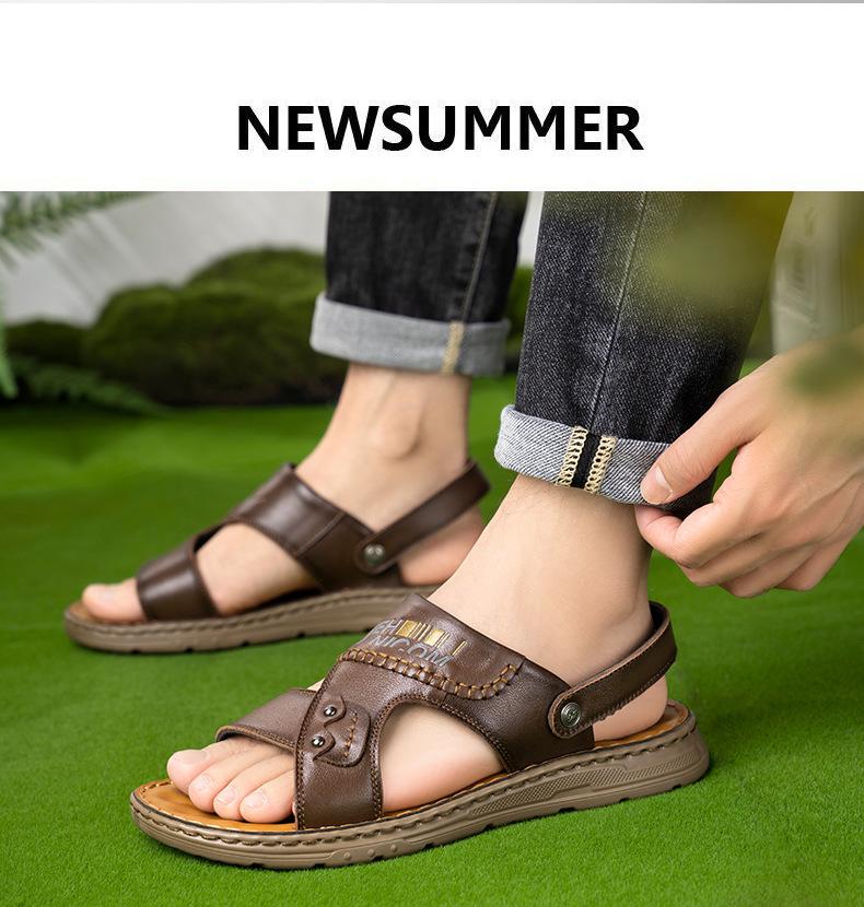 Oferta Especial Procesamiento Fuera de Talla Zapatos de Playa para Hombre Cuero Genuino Verano Nuevas Sandalias de Suela Ligera Casual Versátil Suela Blanda Sandalias para Hombre