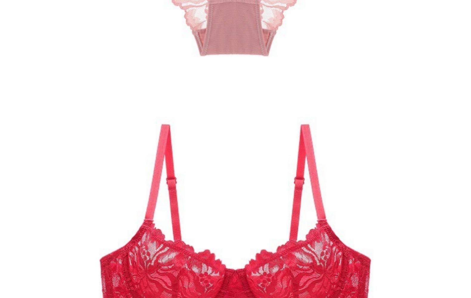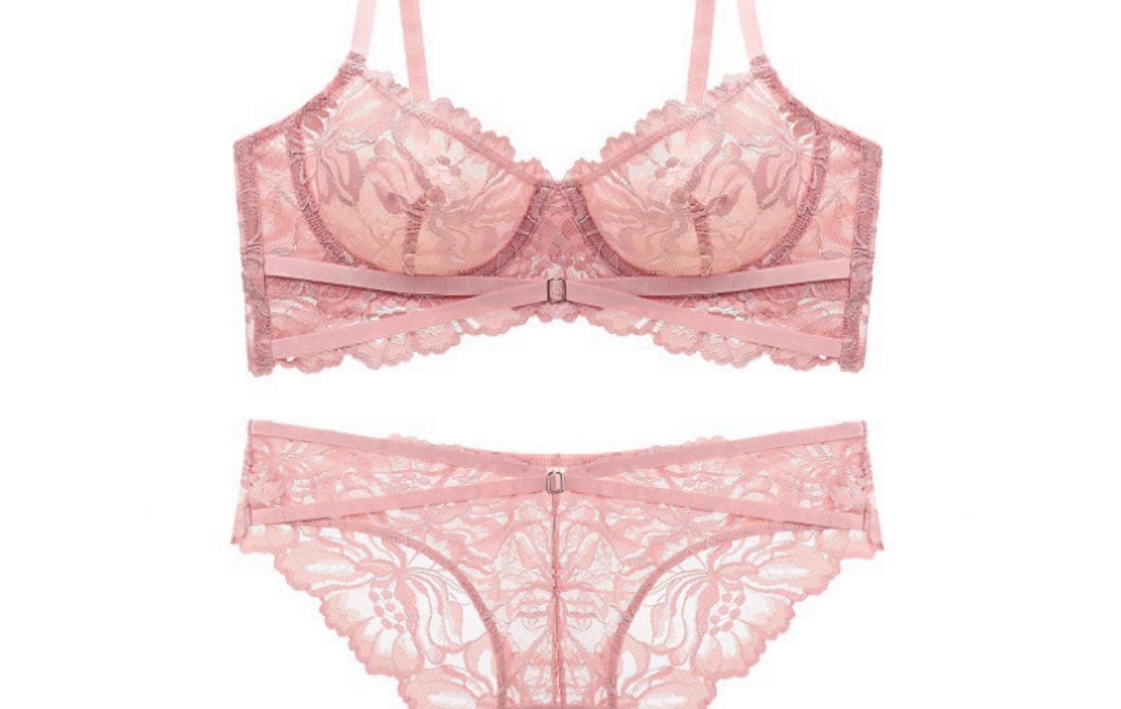 Conjunto de Sujetador Sexy Francés de Encaje Bordado al por Mayor con Tirantes Cruzados, Ultrafino para Busto Grande, Sujetador de Ropa Interior Pequeño