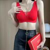 Gran Venta Venta Sexy Copa Delgada Copa Triangular Conjunto de Sujetador Inalámbrico Rojo Año del Zodíaco Bordado Encaje Ropa Interior para Mujer