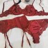 Lencería sexy transfronteriza para mujer, sujetador francés fino de satén con encaje, rojo Benmingnian, conjunto de lencería de talla grande