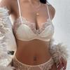 Lencería Sexy de Encaje Transfronteriza Super Delgada Transparente Estampado de Corazones Ropa Interior para Mujer Pecho Grande Luce Pequeño Cómodo Conjunto de Brasier