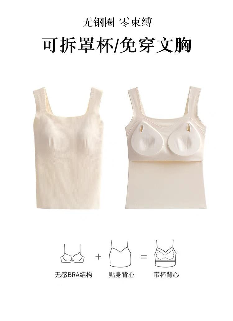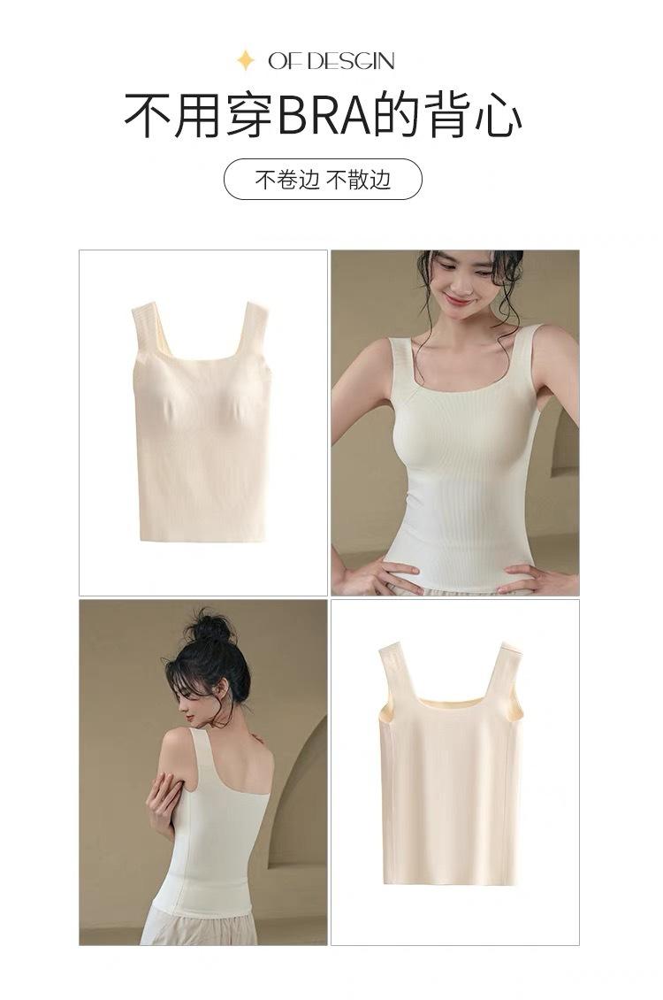 Camisola de seda helada con cuello cuadrado que no deja marcas para mujer, chaleco fino con almohadilla en el pecho, corte entallado, adelgazante, hermosa base interior en la espalda, sin mangas.