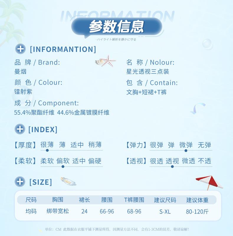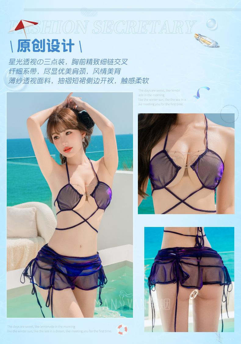 Manyan Lencería Sexy de Verano Perspectiva Starlight Traje de Baño de Playa Sirena de Tres Puntos Uniforme Traje 9203