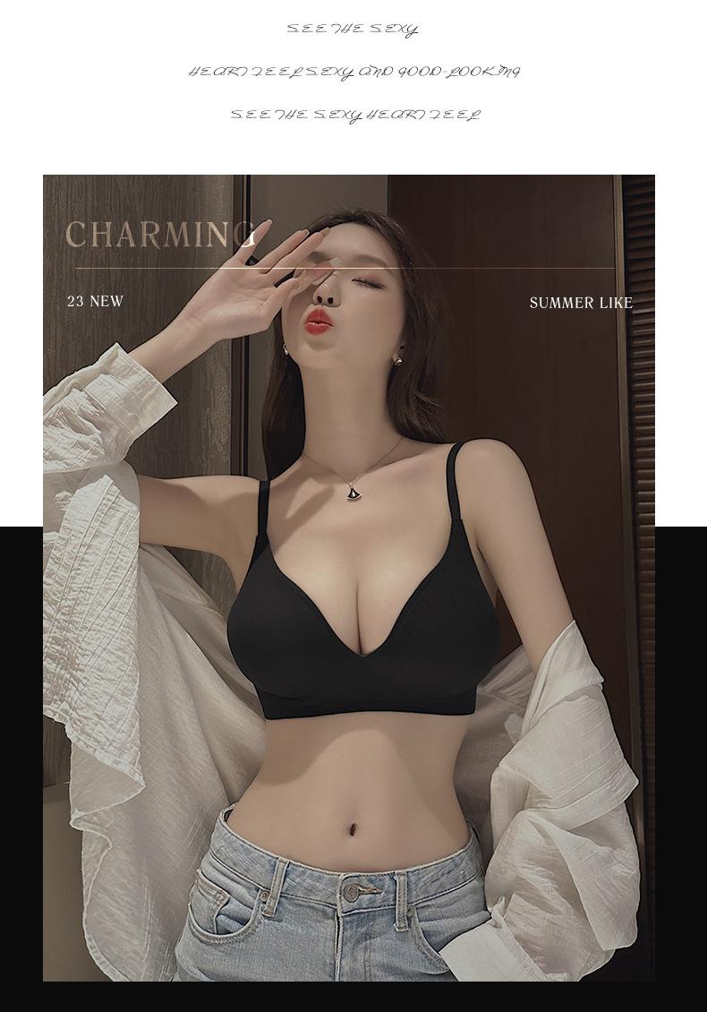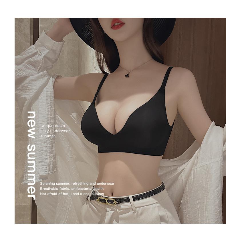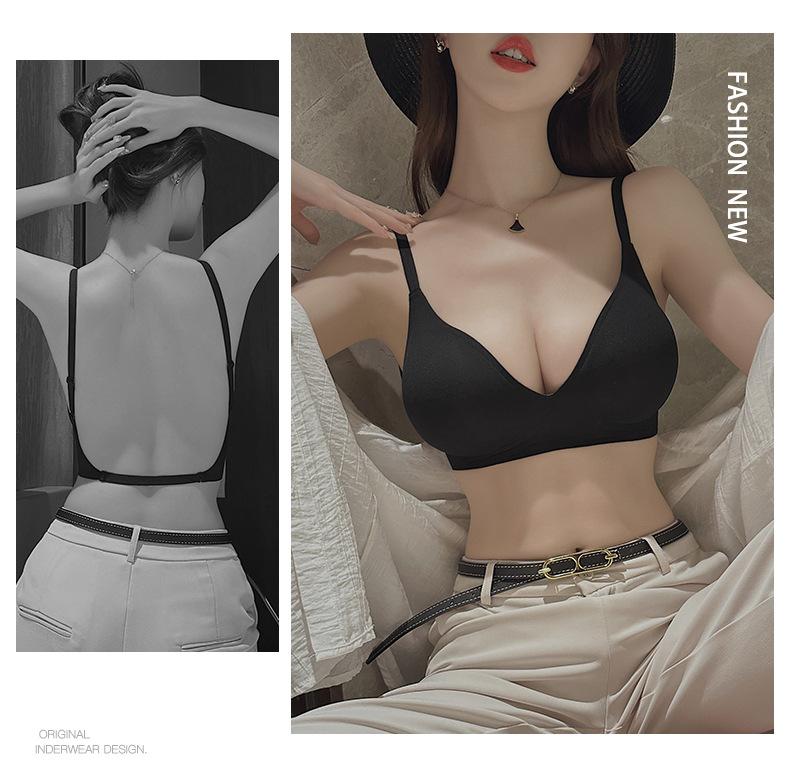 Ropa interior con espalda en forma de U para mujer, pecho pequeño fruncido, 2023, nuevo sujetador invisible sin costuras y sin espalda, pecho extendido, cintura grande y delgada