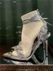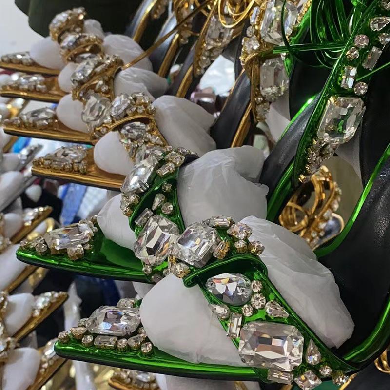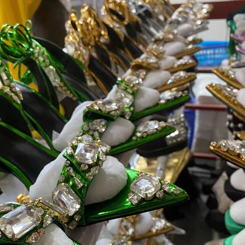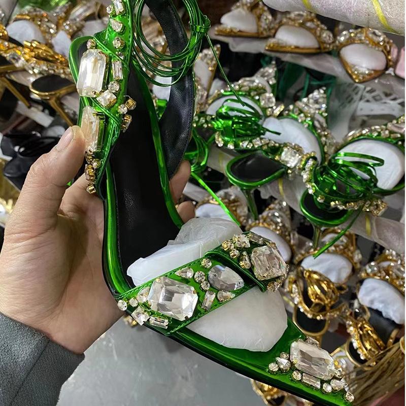2022 Verano Comercio exterior Nueva pasarela europea y americana Zapatos de boda de tacón alto con piedras preciosas Zapatos de punta puntiaguda de moda Zapatos de talla grande Sandalias para mujer
