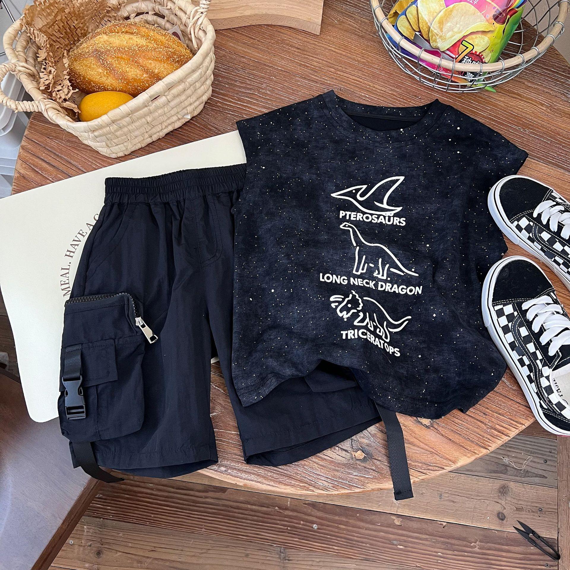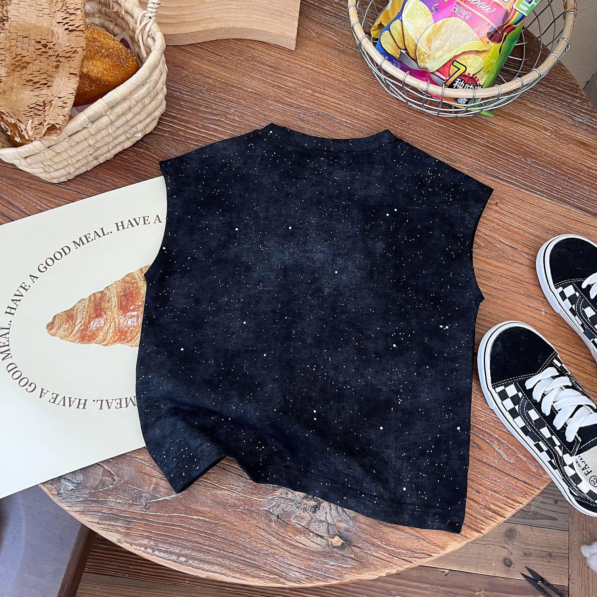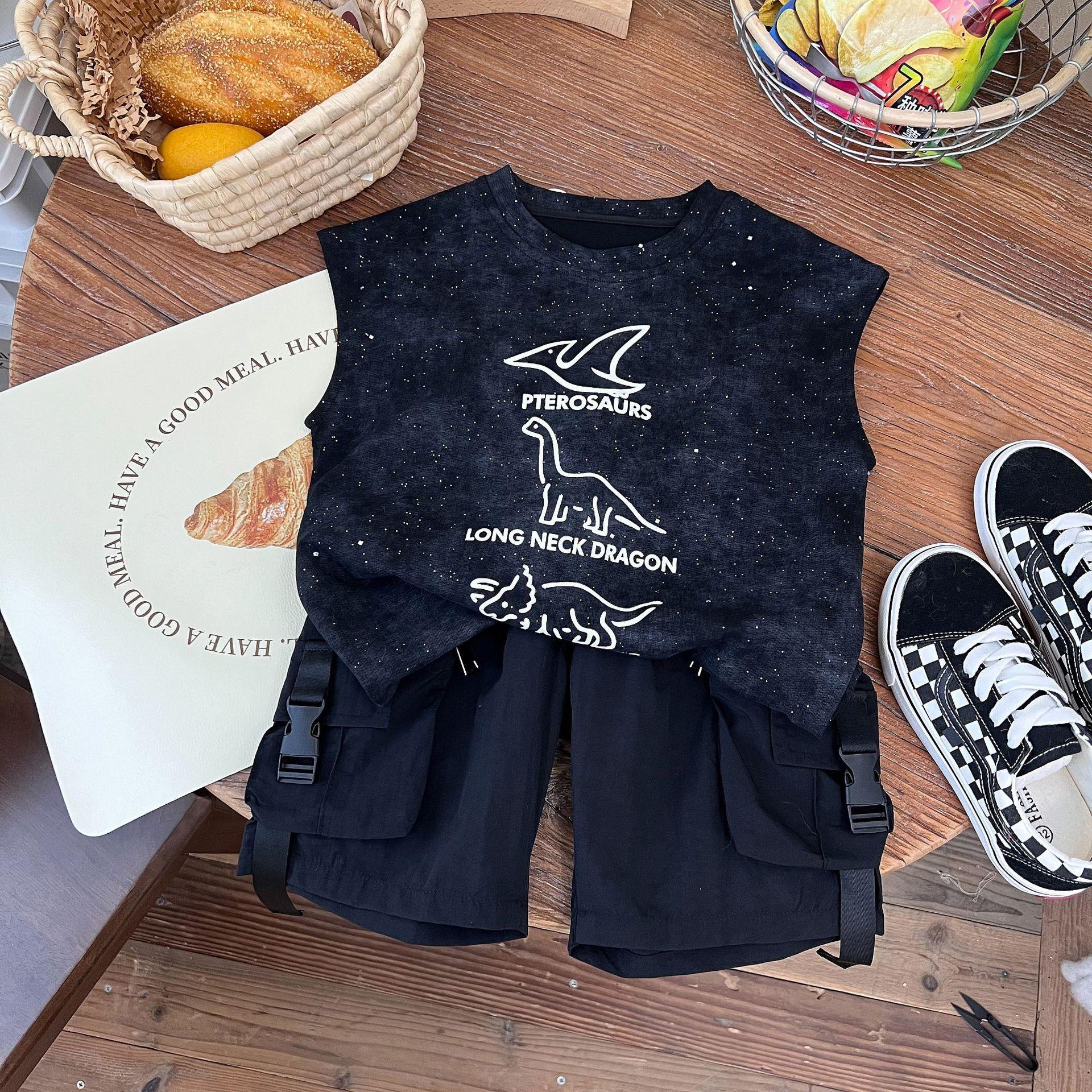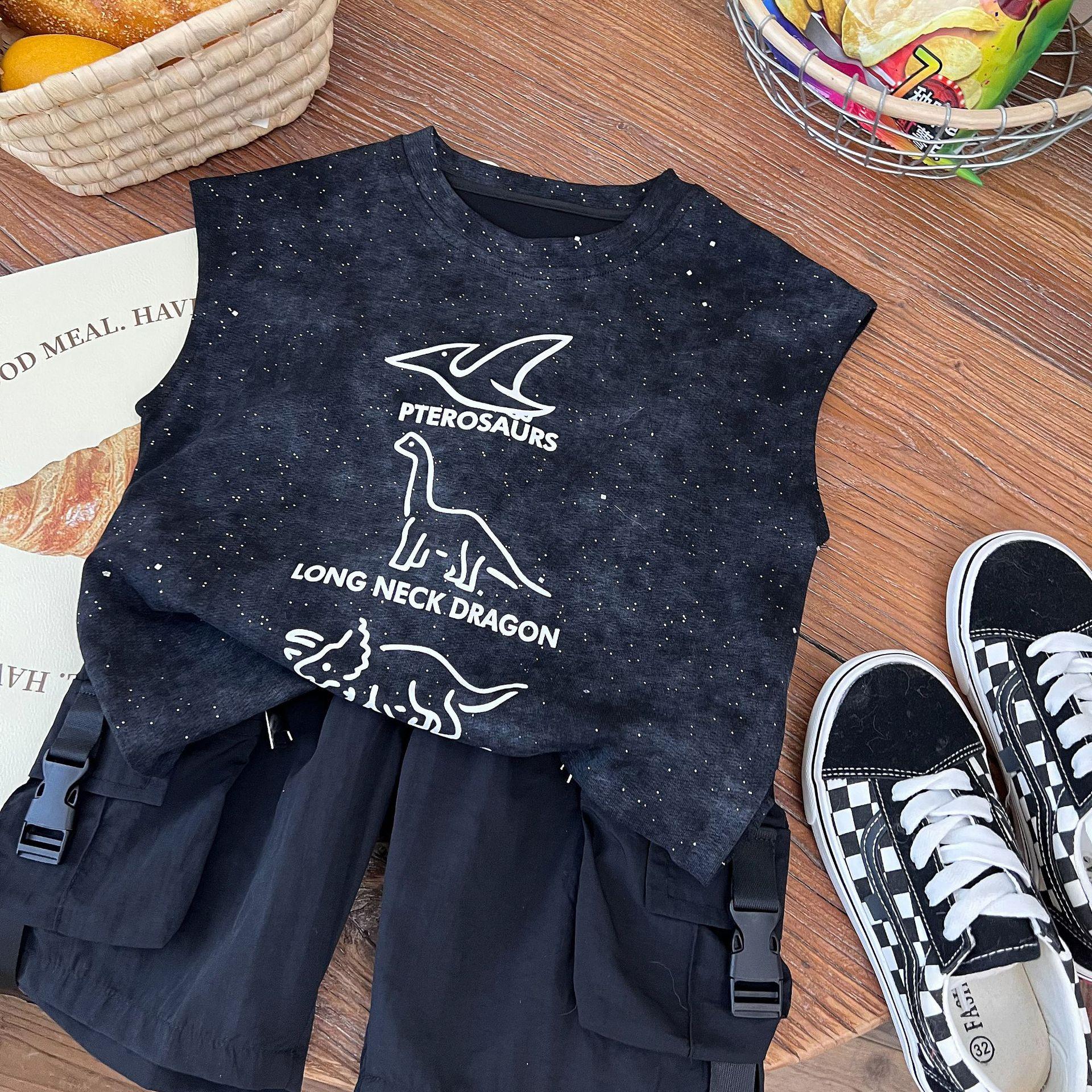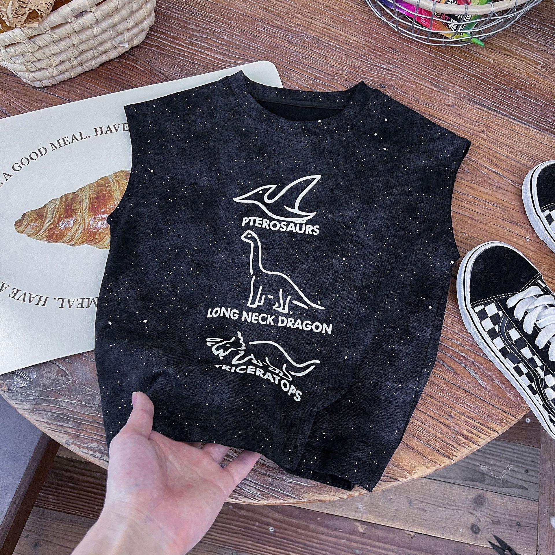 Ropa para Niños 2025 Verano Nuevo Niños Estilo Coreano Dinosaurio Brillante Camiseta sin Mangas para Niños Chaleco Exterior de Moda de Dibujos Animados