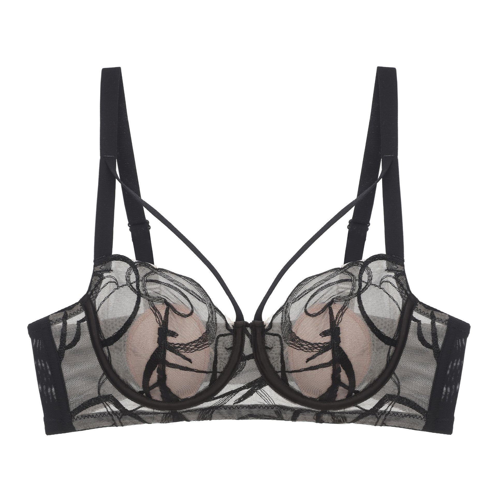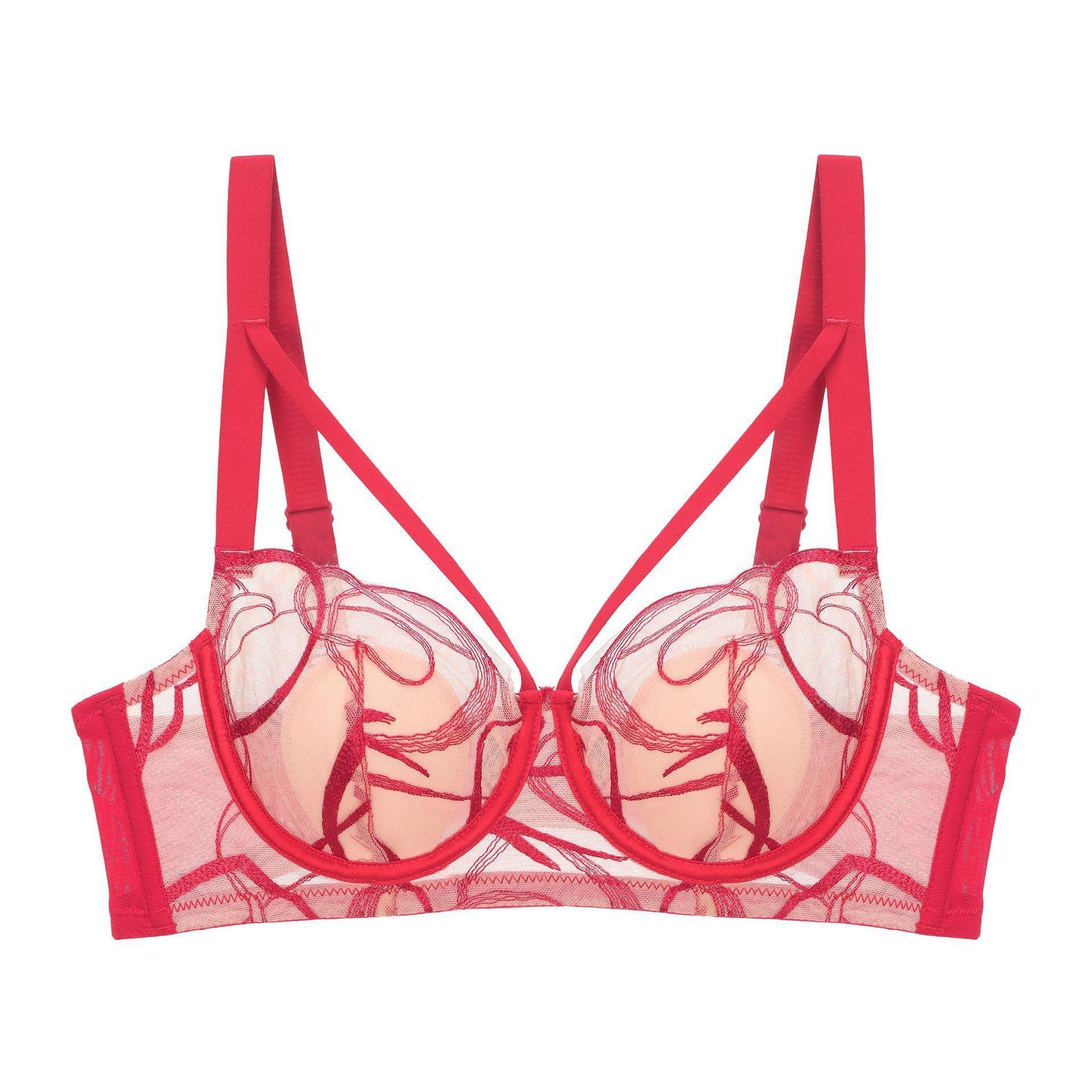 Ropa interior nueva estilo francés sexy pintura a la tinta bordado encaje ropa interior copa oreja de conejo pecho grande pequeño talla grande sujetador