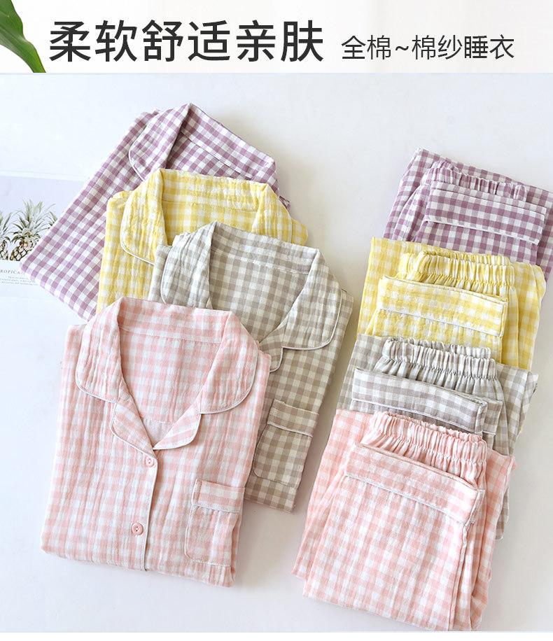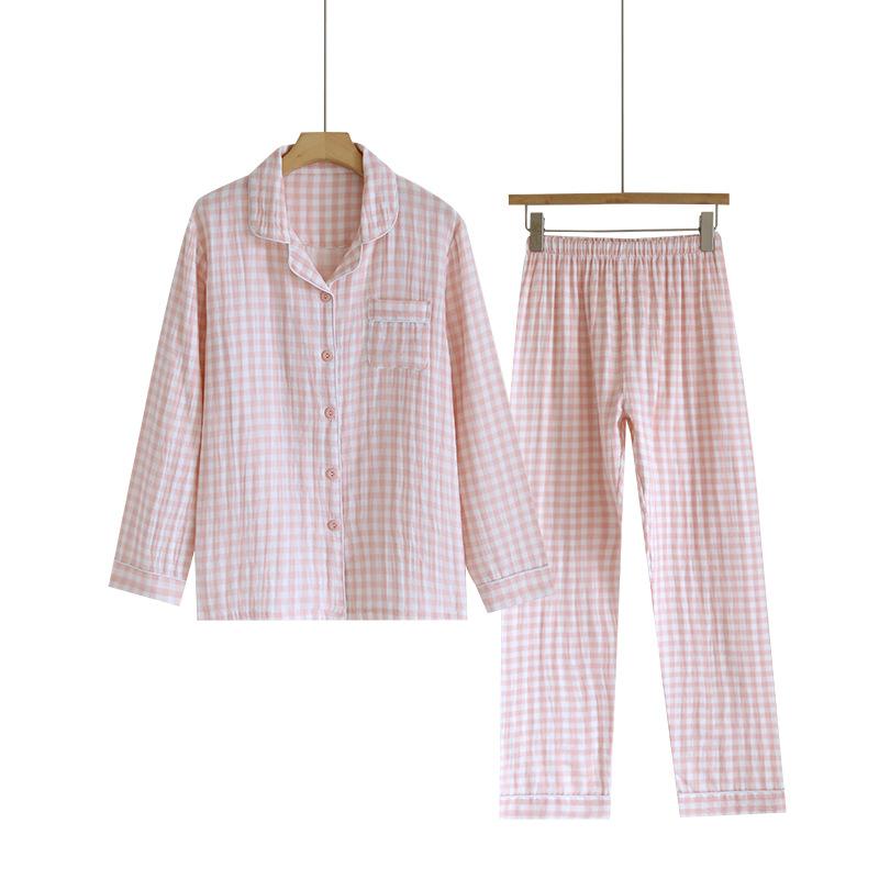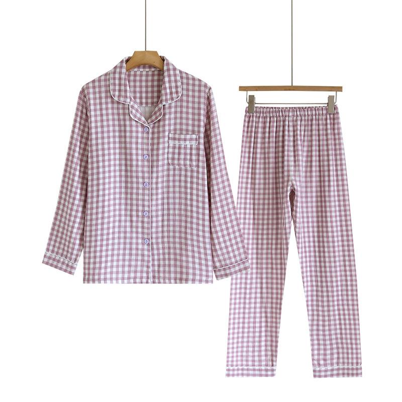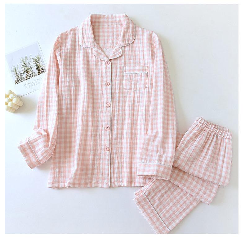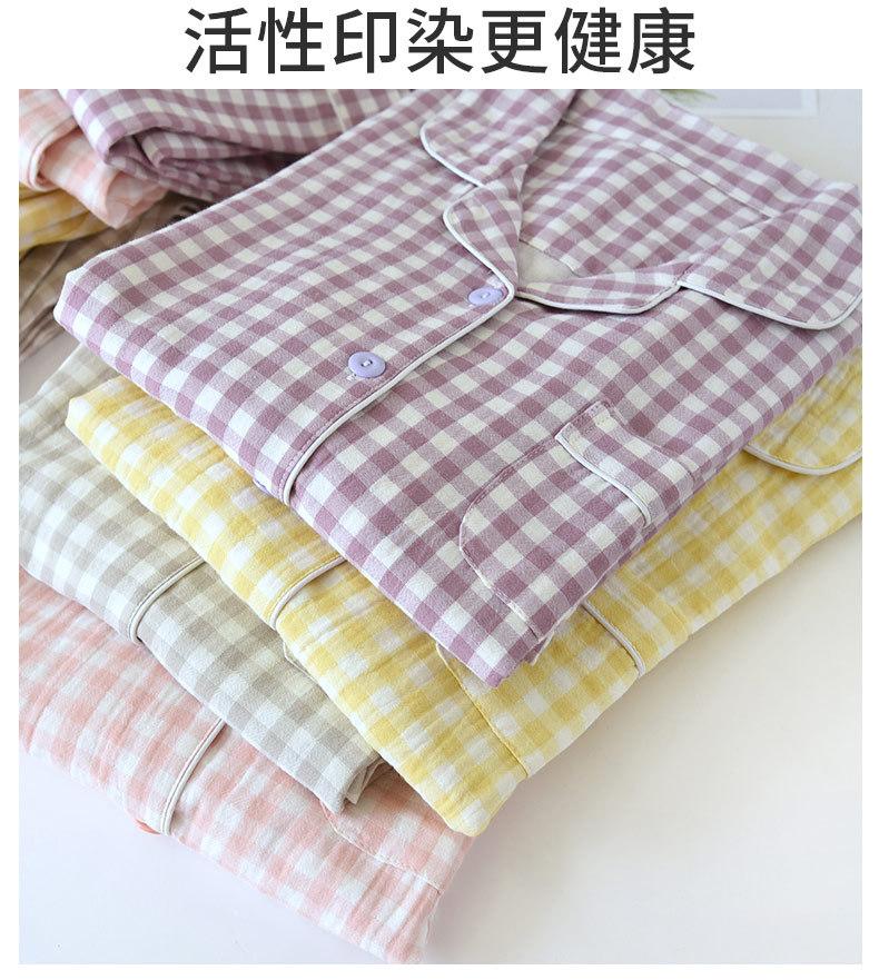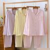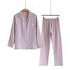 Pijama Algodón Puro Mujer Verano Delgada Tipo Algodón a Pantalones Gasa de Algodón Primavera y Otoño Solapa Conjunto Ropa para Casa Transpirable y Cómodo