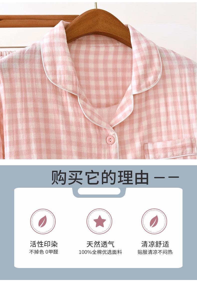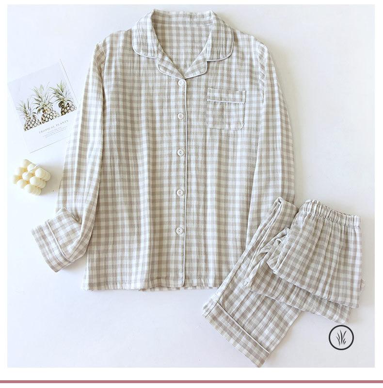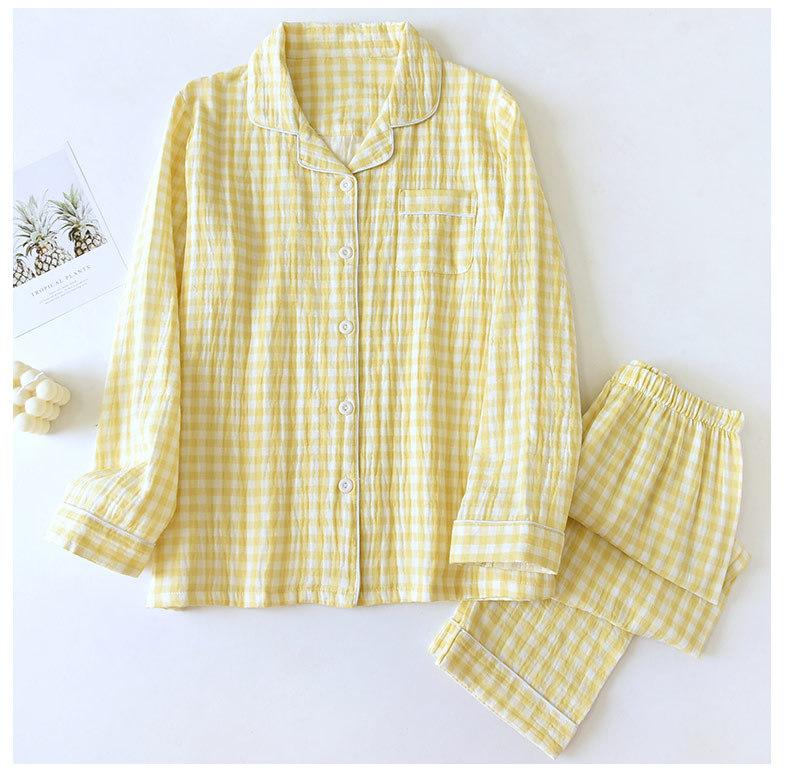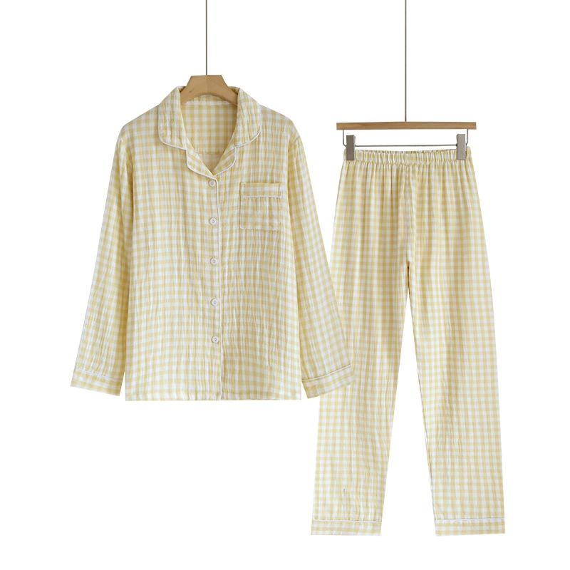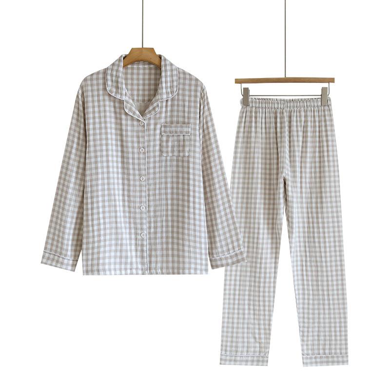 Pijama Algodón Puro Mujer Verano Delgada Tipo Algodón a Pantalones Gasa de Algodón Primavera y Otoño Solapa Conjunto Ropa para Casa Transpirable y Cómodo