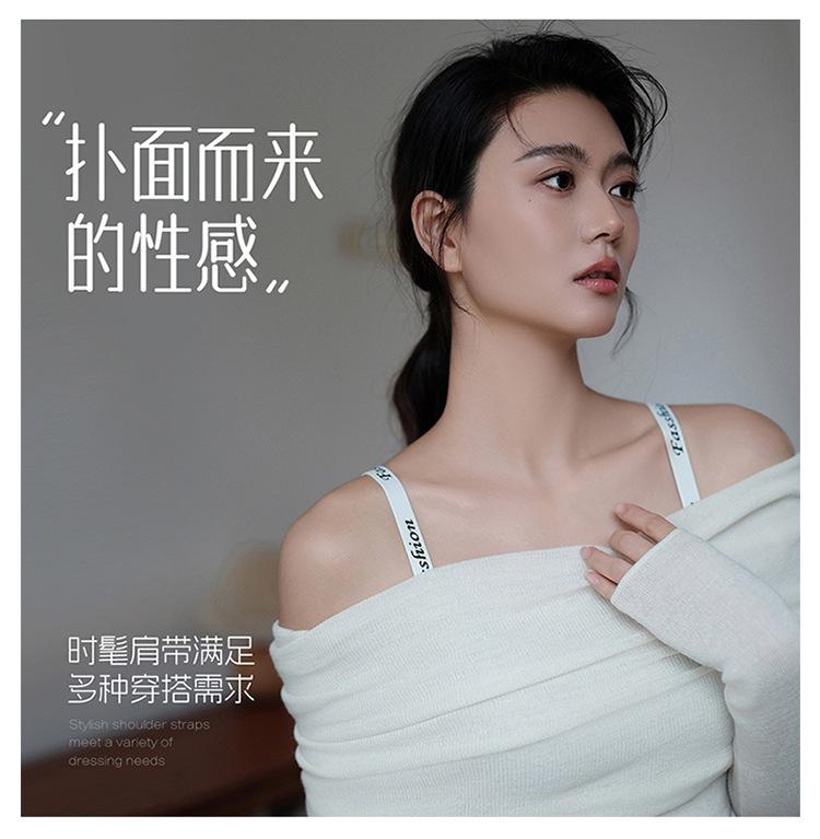 Ropa interior de leche de jalea con letras de cuero para mujer, sin costuras, inalámbrica, cómoda, color nude, cómoda, con copa fija, nailon para mujer