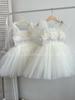 Vestido de Niña Vestido 2025 Nuevo Estilo Estilo Francés Blanco Fiesta de Cumpleaños Bebé de Un Año Vestido de Noche