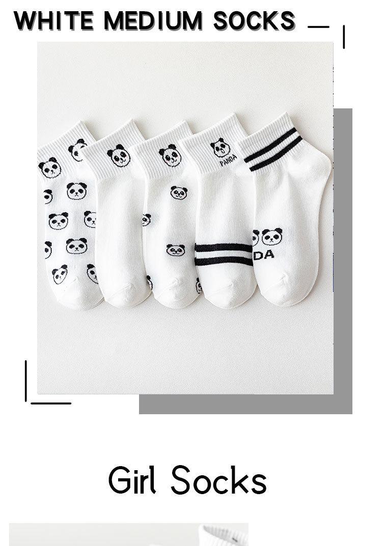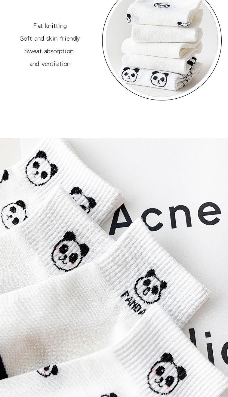 Calcetines de barco de verano para mujer, lindos, de moda ins, calcetines de panda japoneses de boca baja y lado bajo, de dibujos animados, calcetines blancos y negros finos al por mayor de fábrica