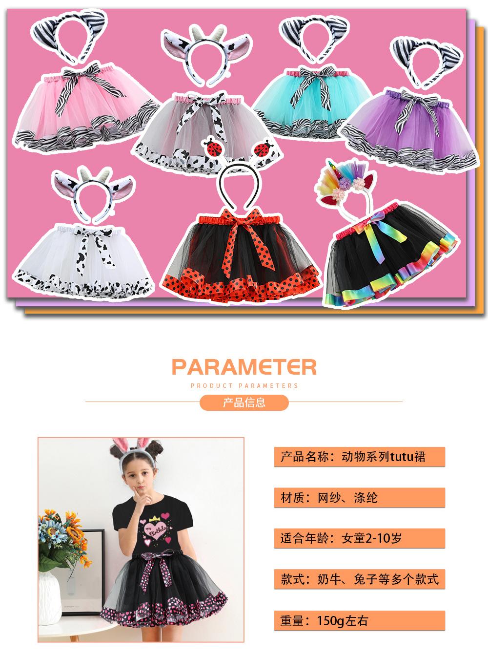 Falda Infantil Serie Animal 2025 Falda Tutú con Estampado de Cebra Vaca de Dibujos Animados Falda Forrada para Niñas