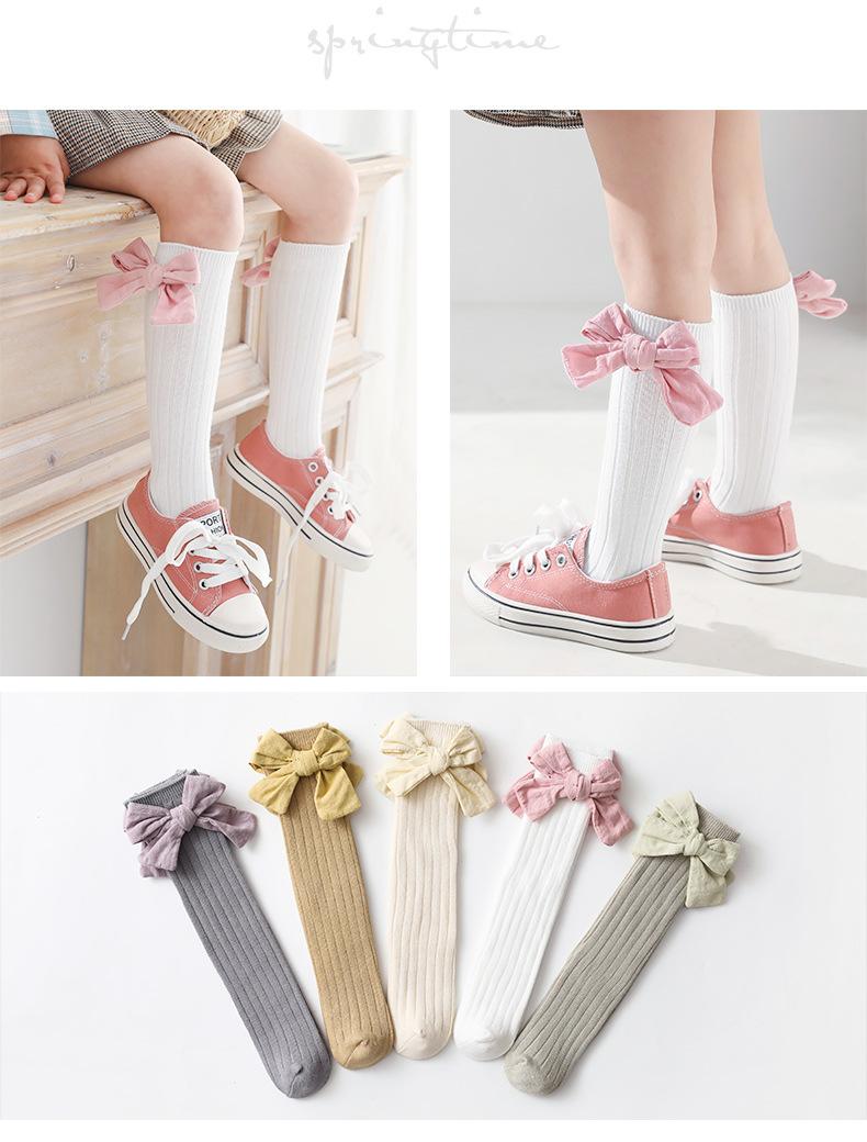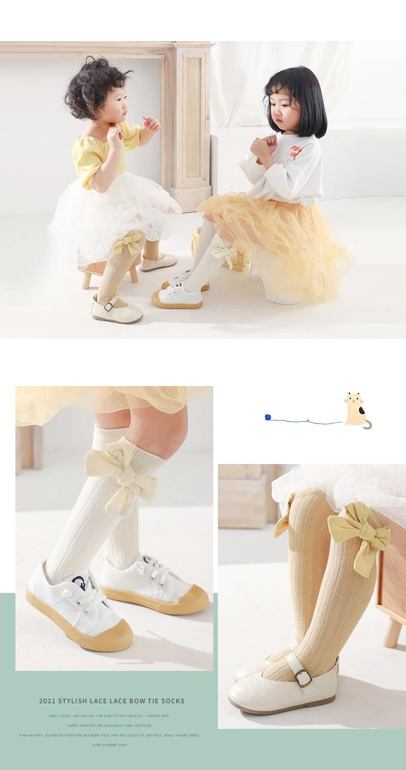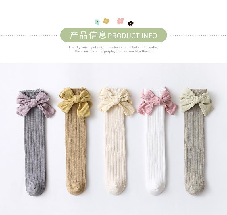 Calcetines nuevos de primavera y verano para niñas, calcetines coreanos con lazo para niños, calcetines de algodón de doble aguja, calcetines para bebés, venta al por mayor